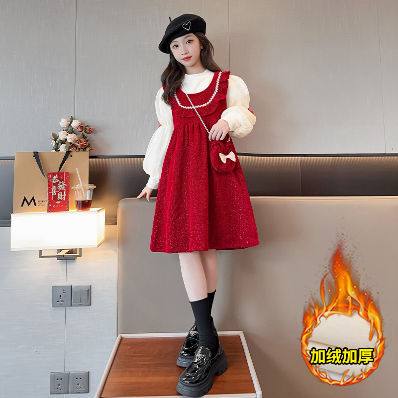 New Year's clothes women's great children's winter New Year uniforms 2024 new girls red beiyendress princess nepotism dress-Taobao