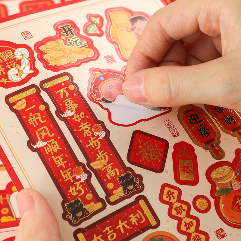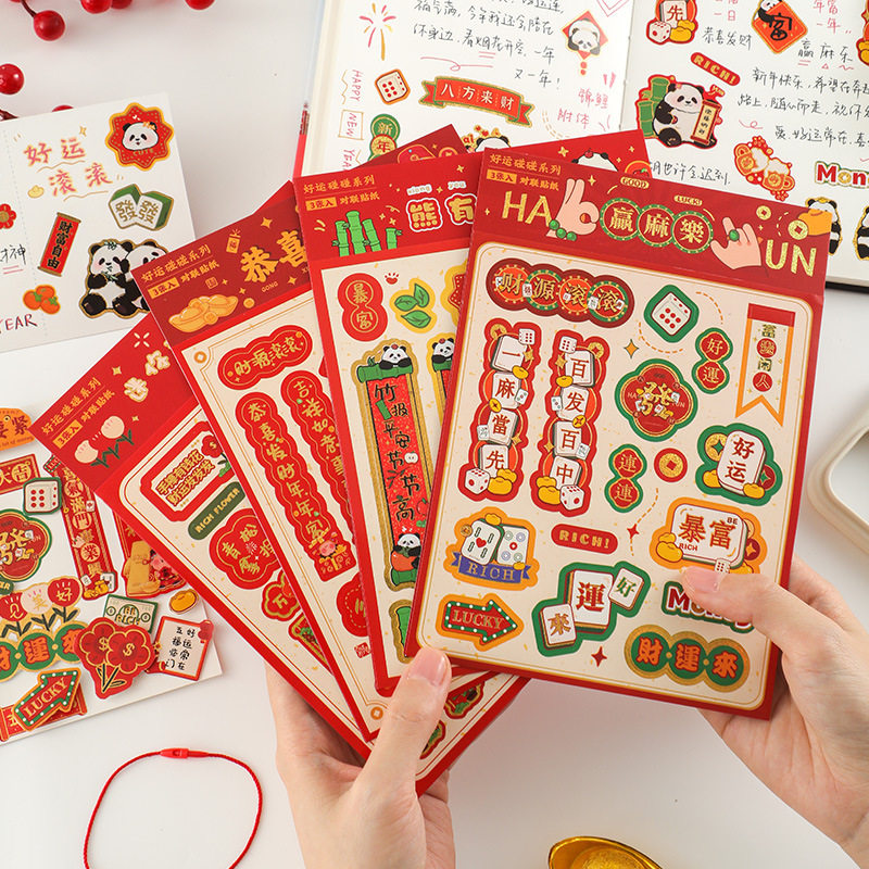 2024 panda sticker New Year's Lunar New Year Lunar New Year Mini couplets Sticker Bag Blessing Handbill Handbill Cartoon Decoration Material Diy Children Girl Mobile Phone Shell Waterproof Cup Notebook Sticker-Taobao