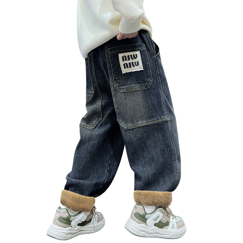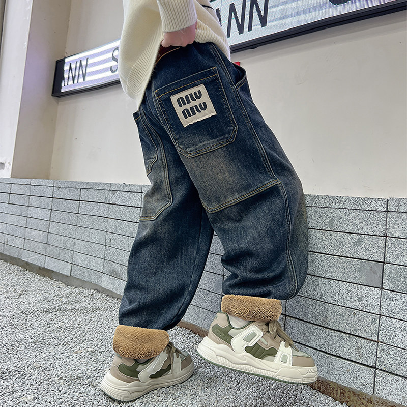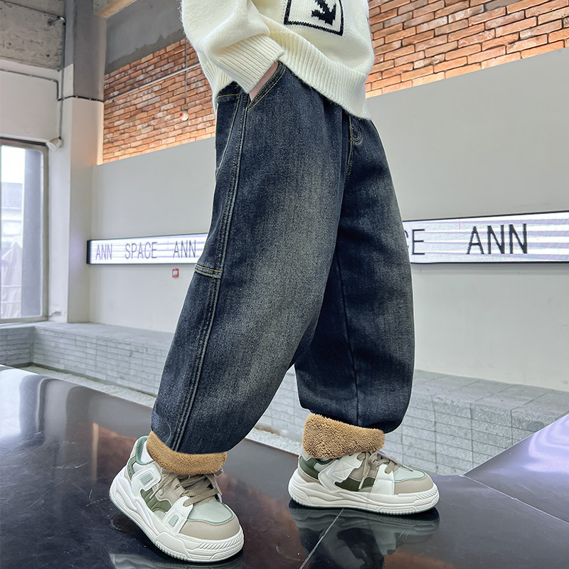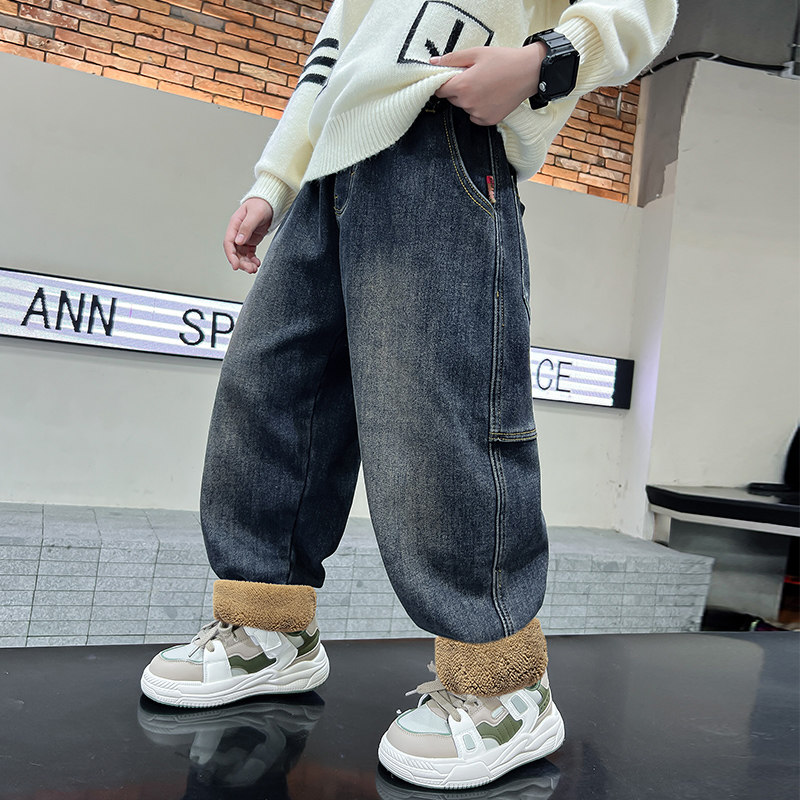 Children's clothes boy winter plus suede pants 2023 new big boy cashmere cotton pants autumn winter style thickened jeans-Taobao