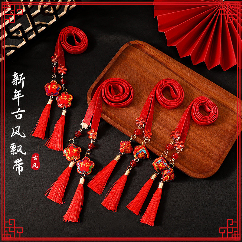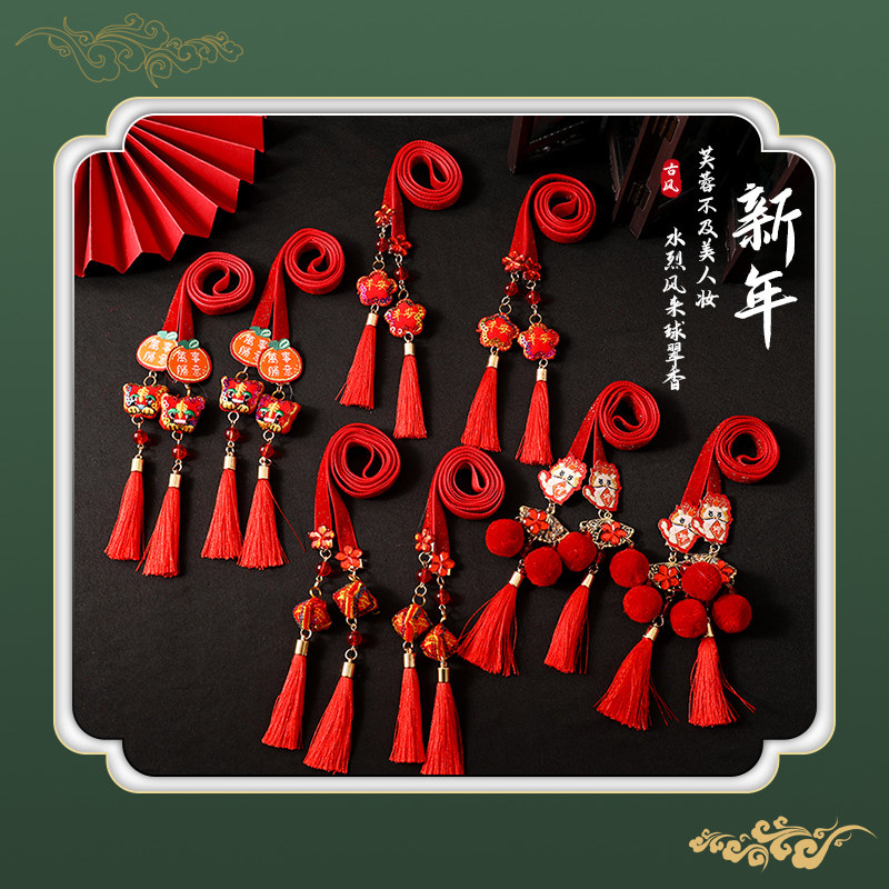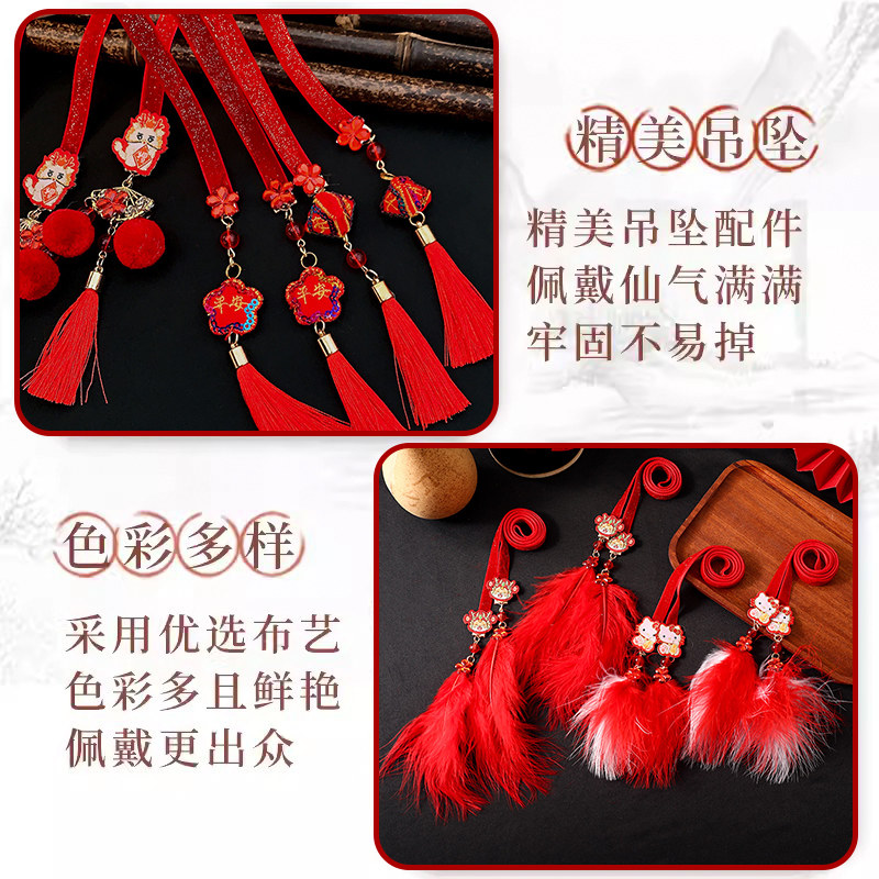 Children's New Year's ancient wind Han clothes head decorated with little girl chiche head rope girl baby China wind flow Su drifting with hair rope-Taobao