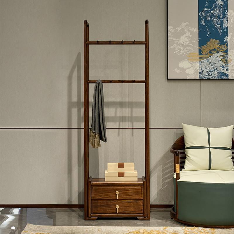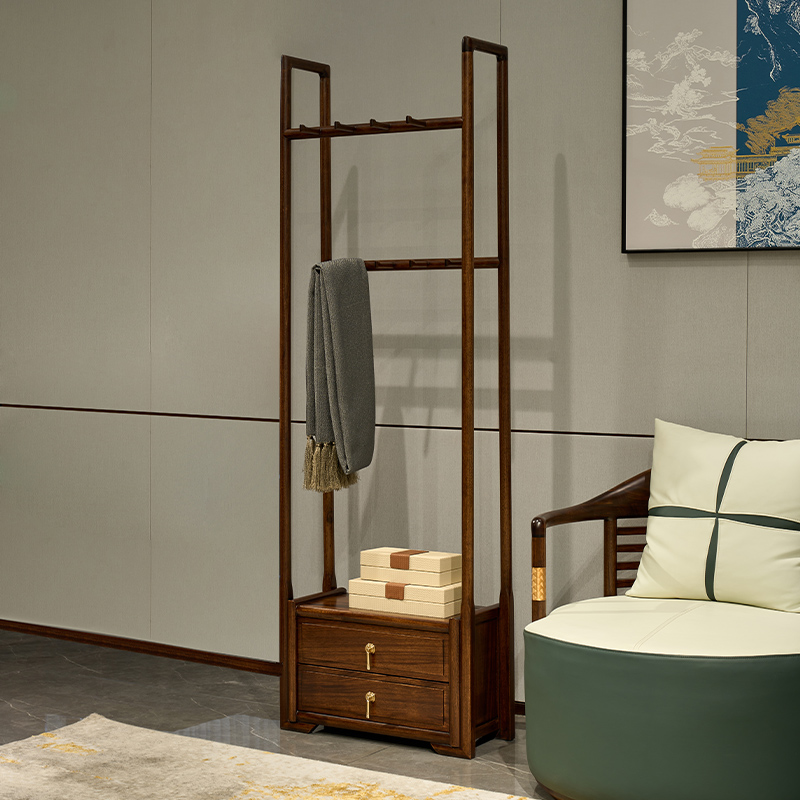 Print Inter love Rigu Suzuki full solid wood clothes hat rack New Chinese black sandalwood hanging clothes hanger double drawers storage furniture-Taobao