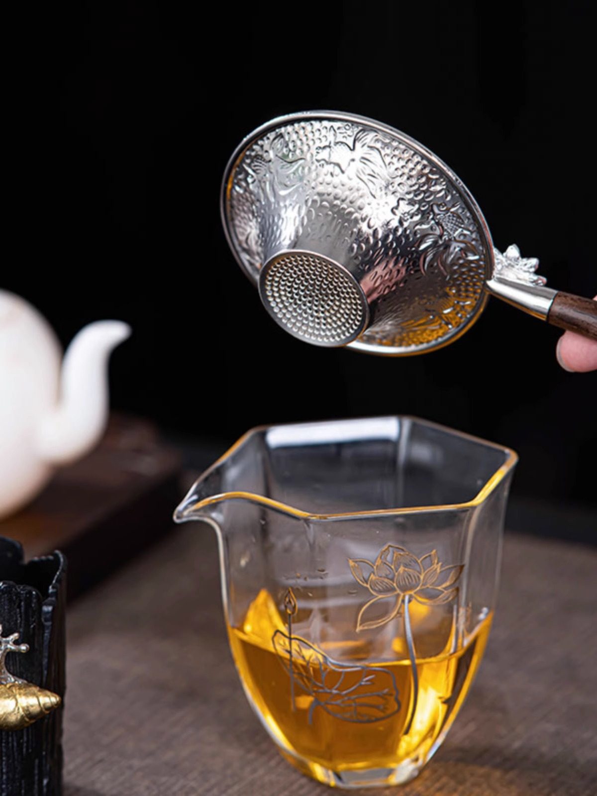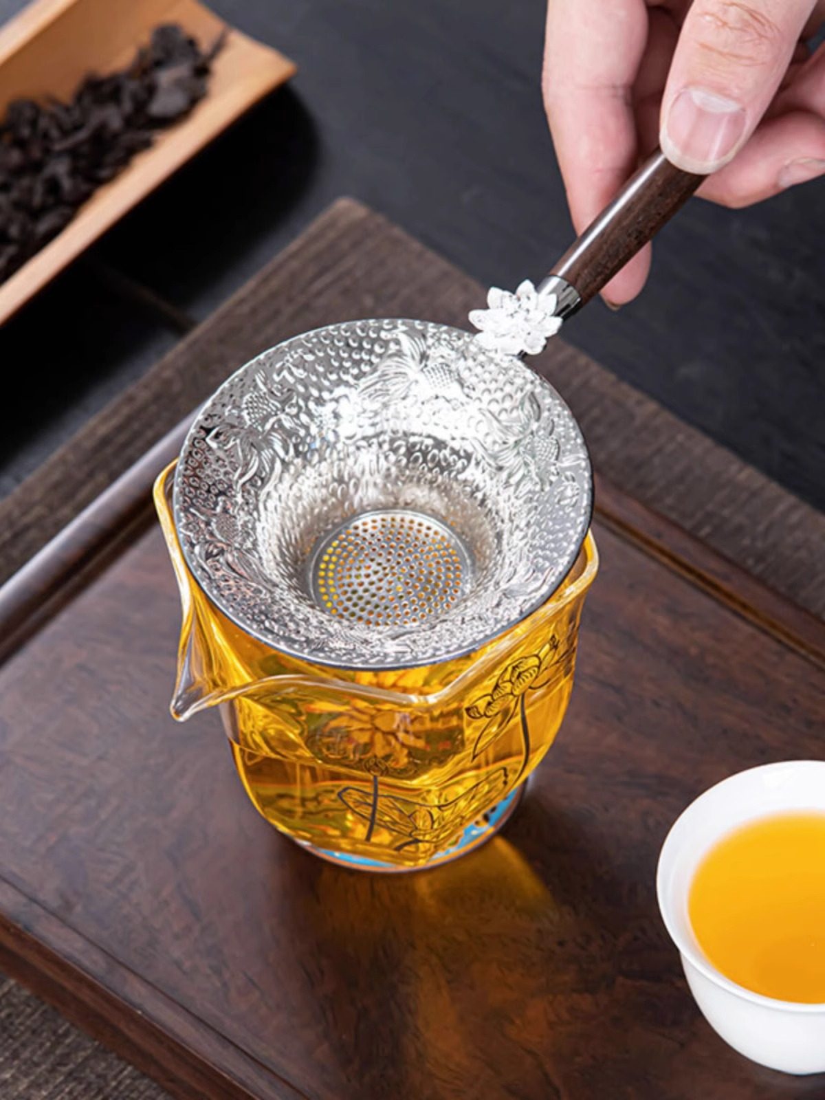 Brocade Carp Tea Drain Lotus Brocade Carp Tea Leak White Pottery handle silver color strainer-large white pottery handle silver color strainer-trumpet black Tao handle silver strainer-large number black pottery handle silver strainer-trumpet