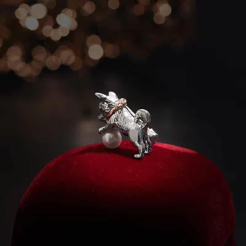 Retro European and American silver puppies Animal brooch Delicate Chest Flower Superior Suit Big-pin Pearl Anti-Walking Light-Taobao