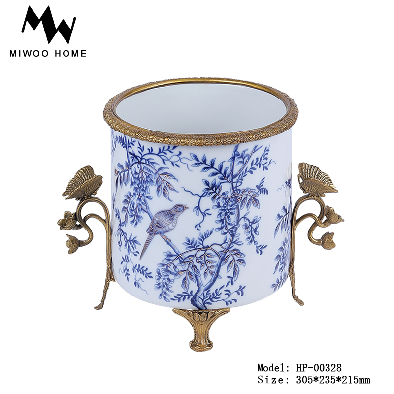 European and American style Chinese wind flower barrel swing piece Villa Corner a few Xuan Guan Flower Pots Hand-painted Floral Ceramics Inlaid Bronze Butterfly Flower Bottle-Taobao