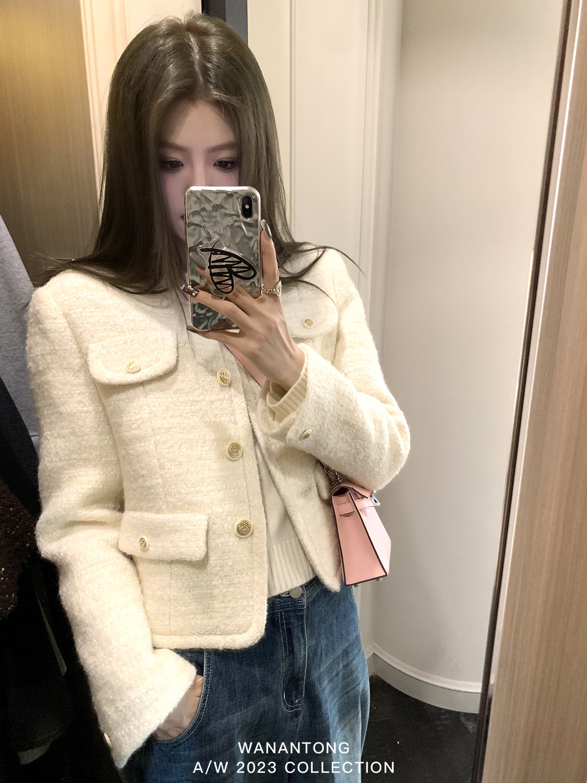 WANANTOONG LITTLE PIU BRIGHT EXCLUSIVE HIGH WOOL FRAGRANT LADY SHORT Round Collar Small Fragrant Coat Woman Winter-Taobao