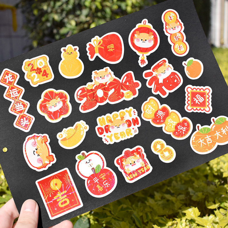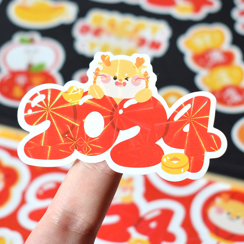 Dragon Express When the head 2024 New Year's New Year's New Year's sticker Shiny Shiny Shiny Shiny Handbill Decorations phone Handbooks Glass Cups Insulated Cups of Festive Little Icon Spring Festival Forword Gift Closure Sticker-Taobao