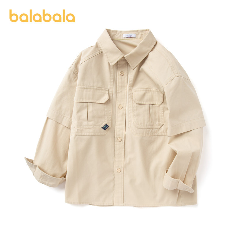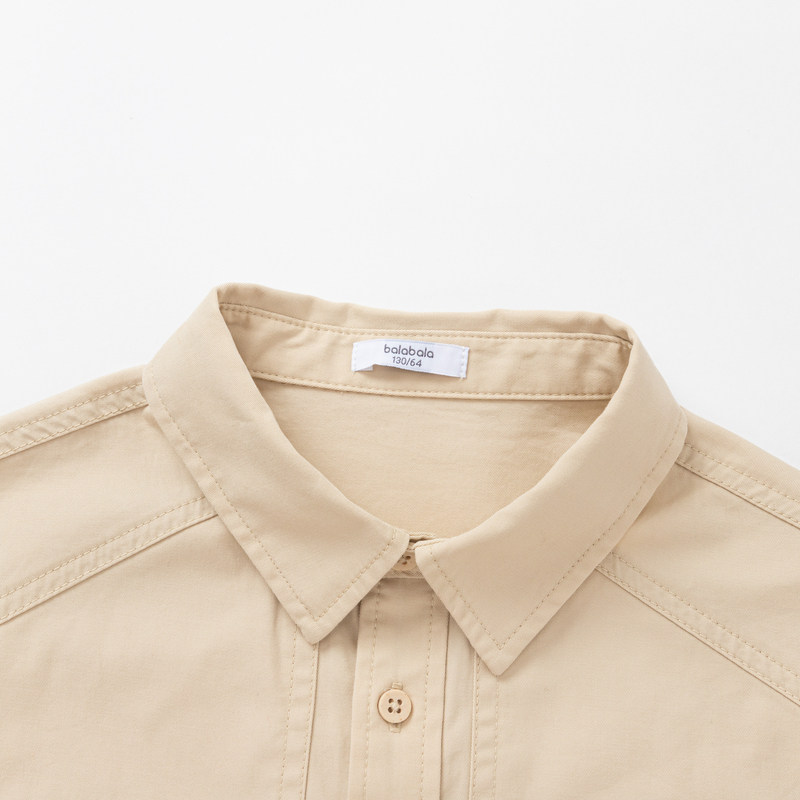 Barabara Children's shirt boy shirt for large children pure cotton spring clothing long sleeve pure color casual turning collar blouses-Taobao