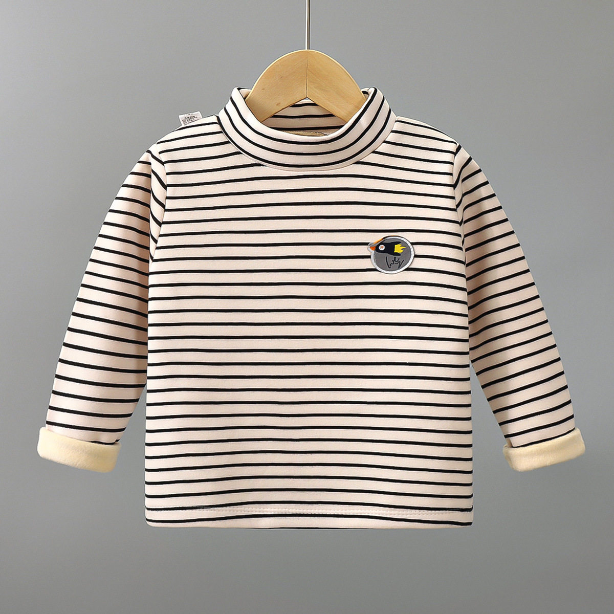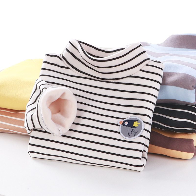 Children plus velvet bottom-shirt autumn winter new thickened warm baby t-shirt girl with high collar warm blouse child dress-Taobao