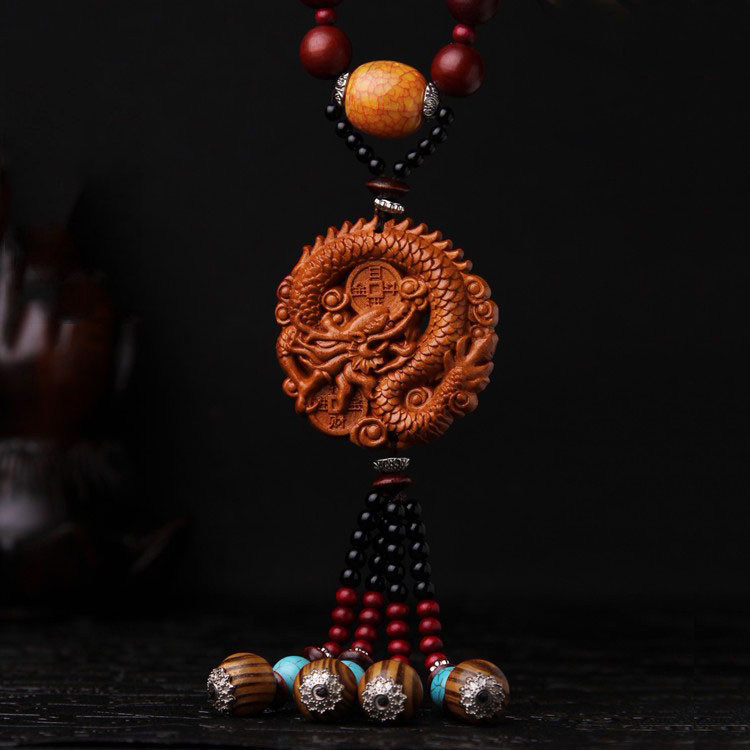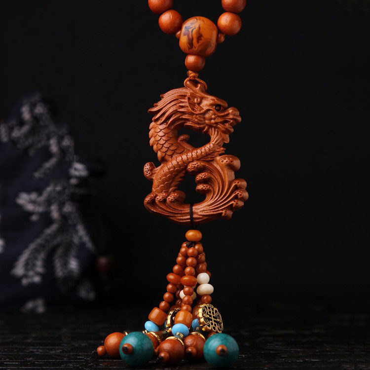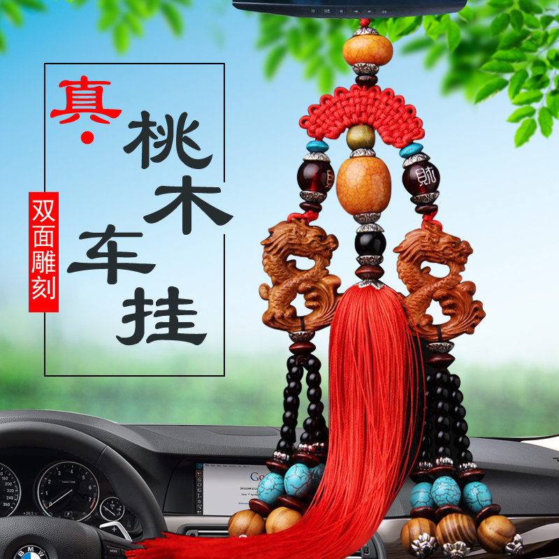 Peach Wood Car Pendant In-car Rearview Mirror Dolly on Hanging Pendant Pendant Dragon Upscale Men 2023 New-Taobao