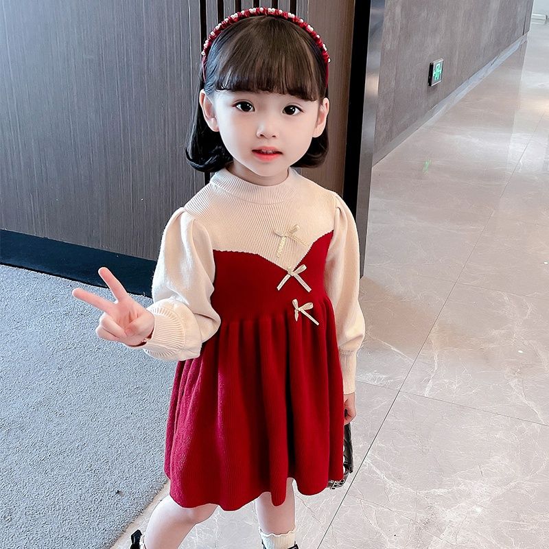 Baby one-piece dress plus suede Korean teas girl silk ribbon dress spring autumn 2021 new spring dress women's baby foreign air autumn-Taobao