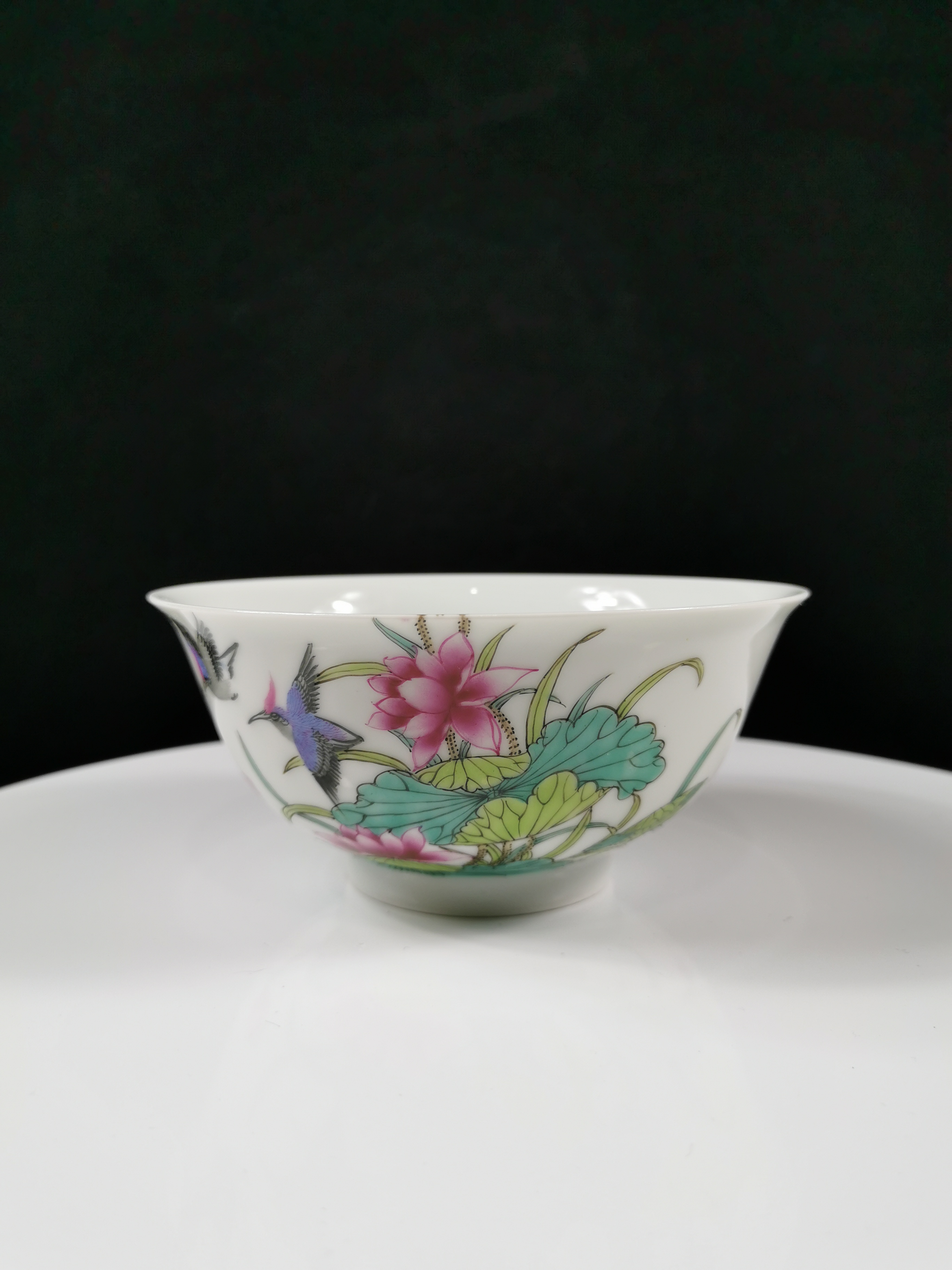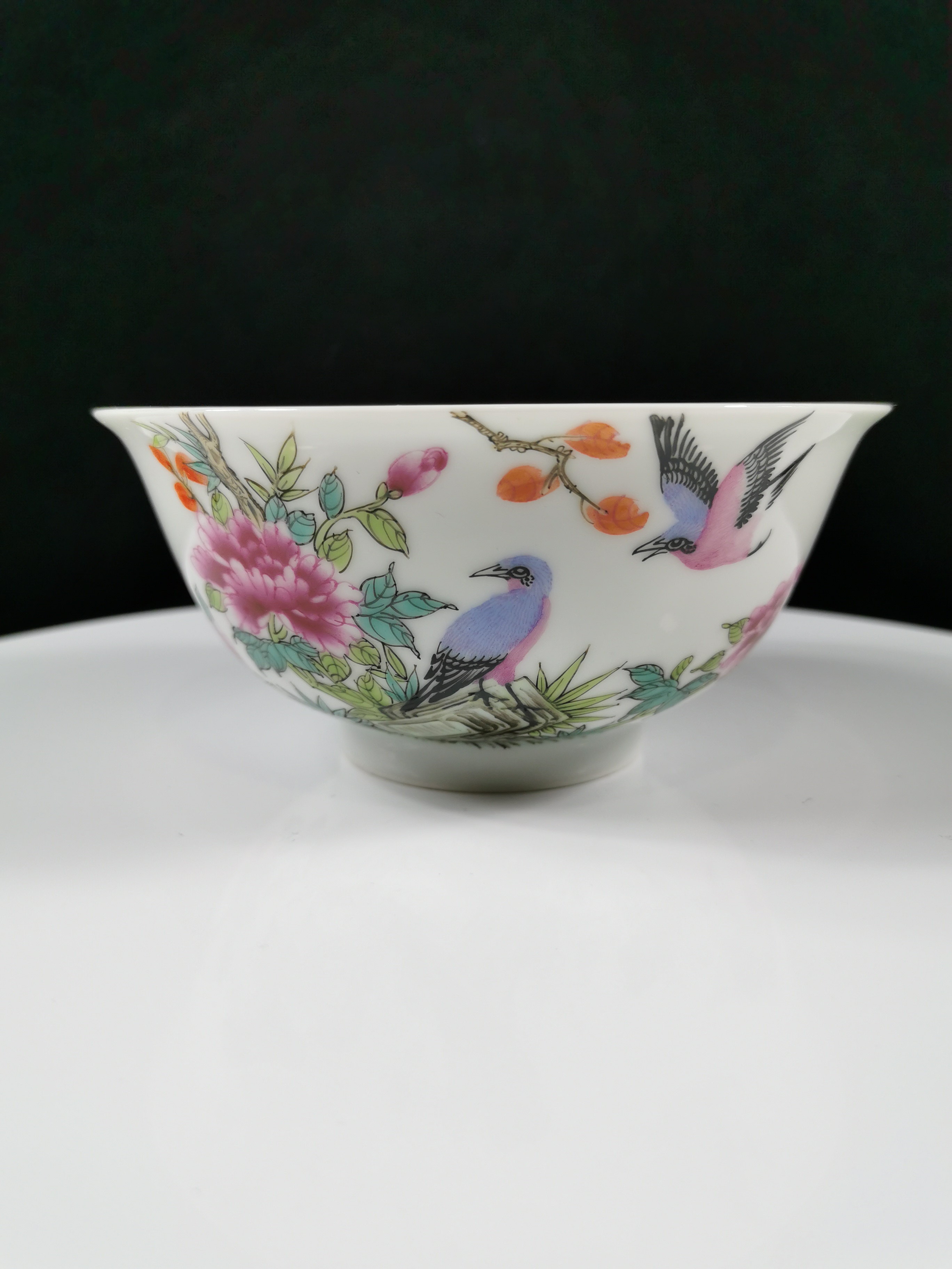 Jingdezhen Ceramic Ware Handmade Painting Pink Flowers Bird Imitation Ancient Bowl Living-room Bookroom Bogu Shelf Home Decoration Pendulum I-Taobao