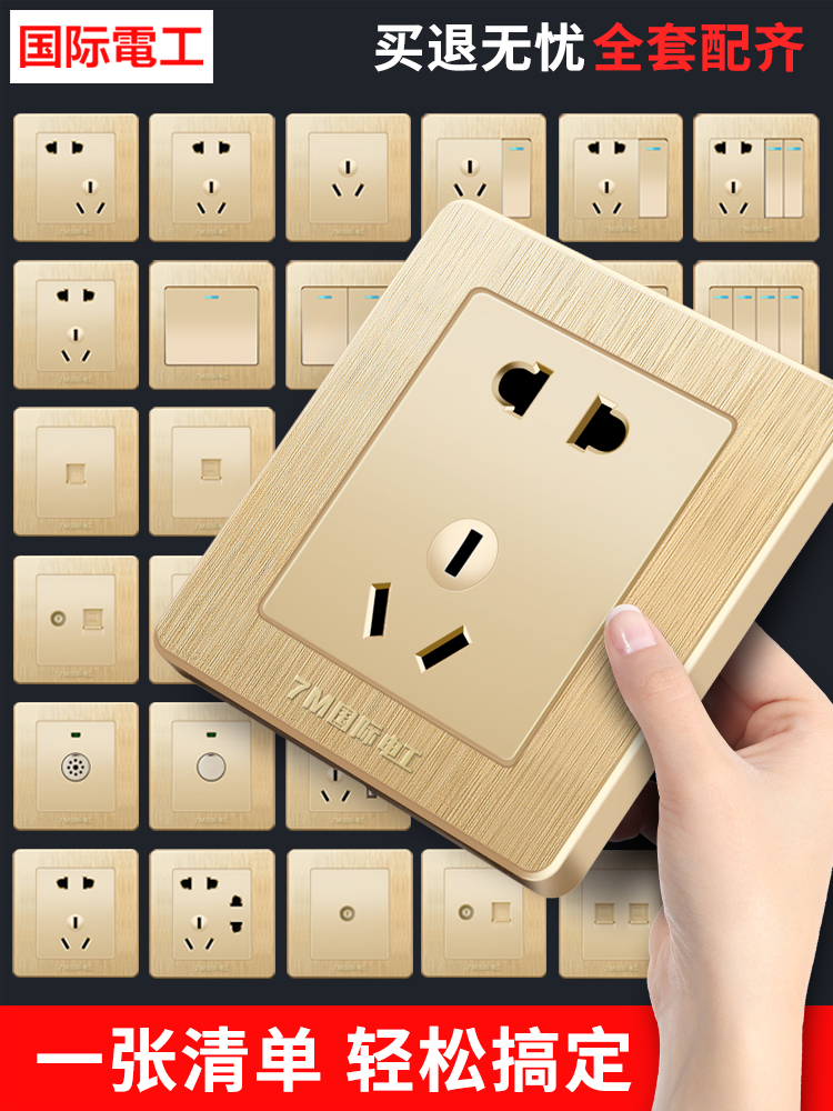 International Electrician Switch Socket TV Phone Joint Interface socket Champagne Gold TV Phone socket-Taobao