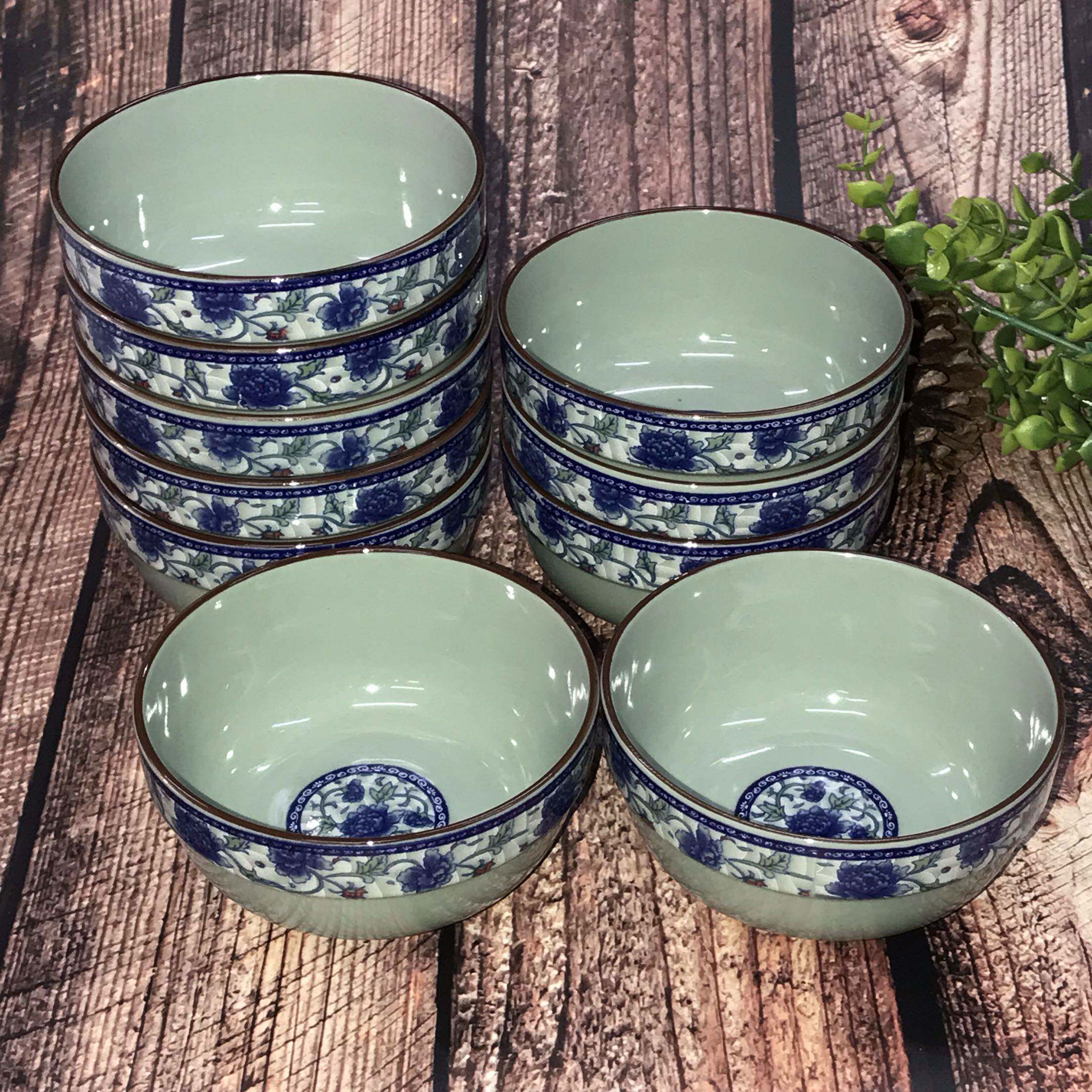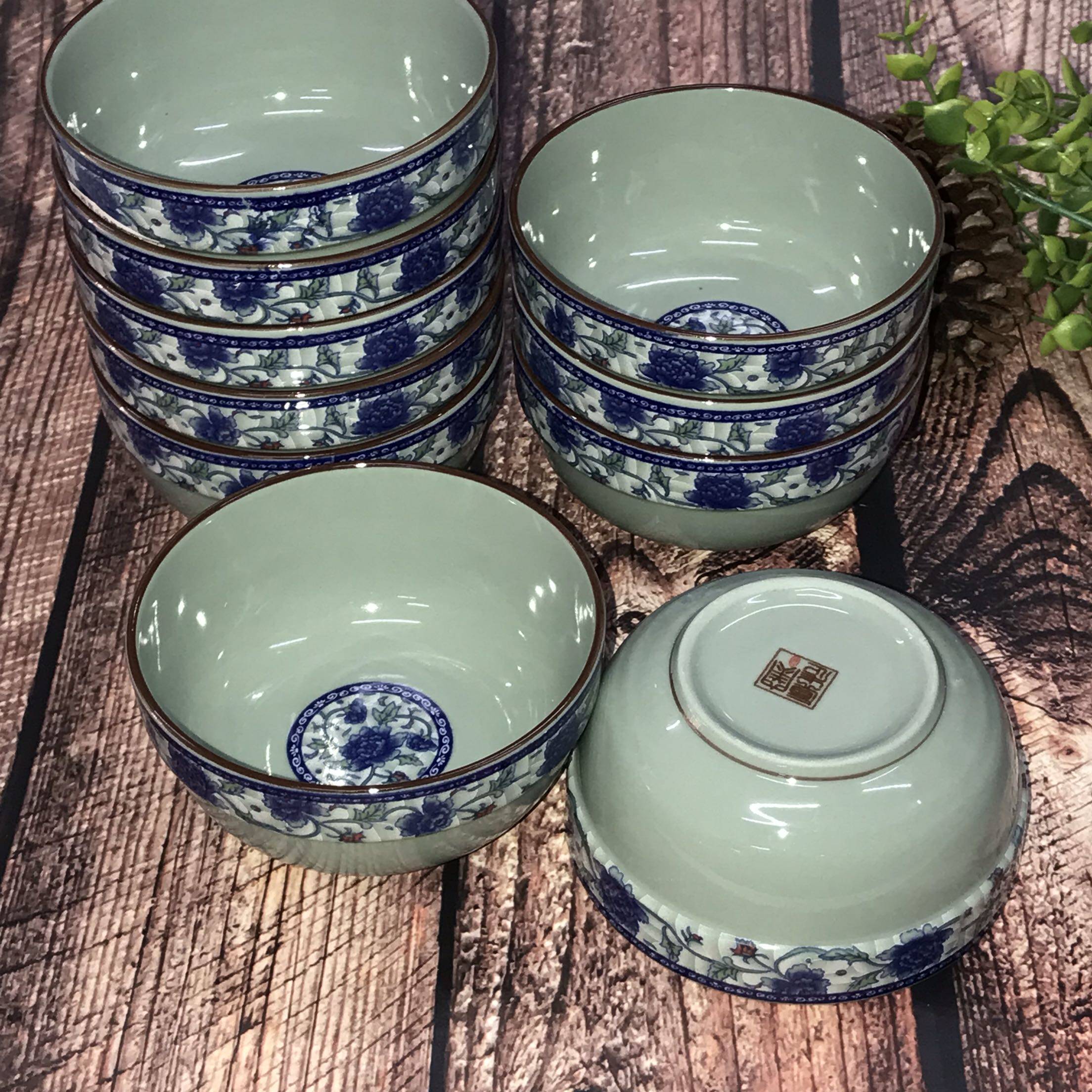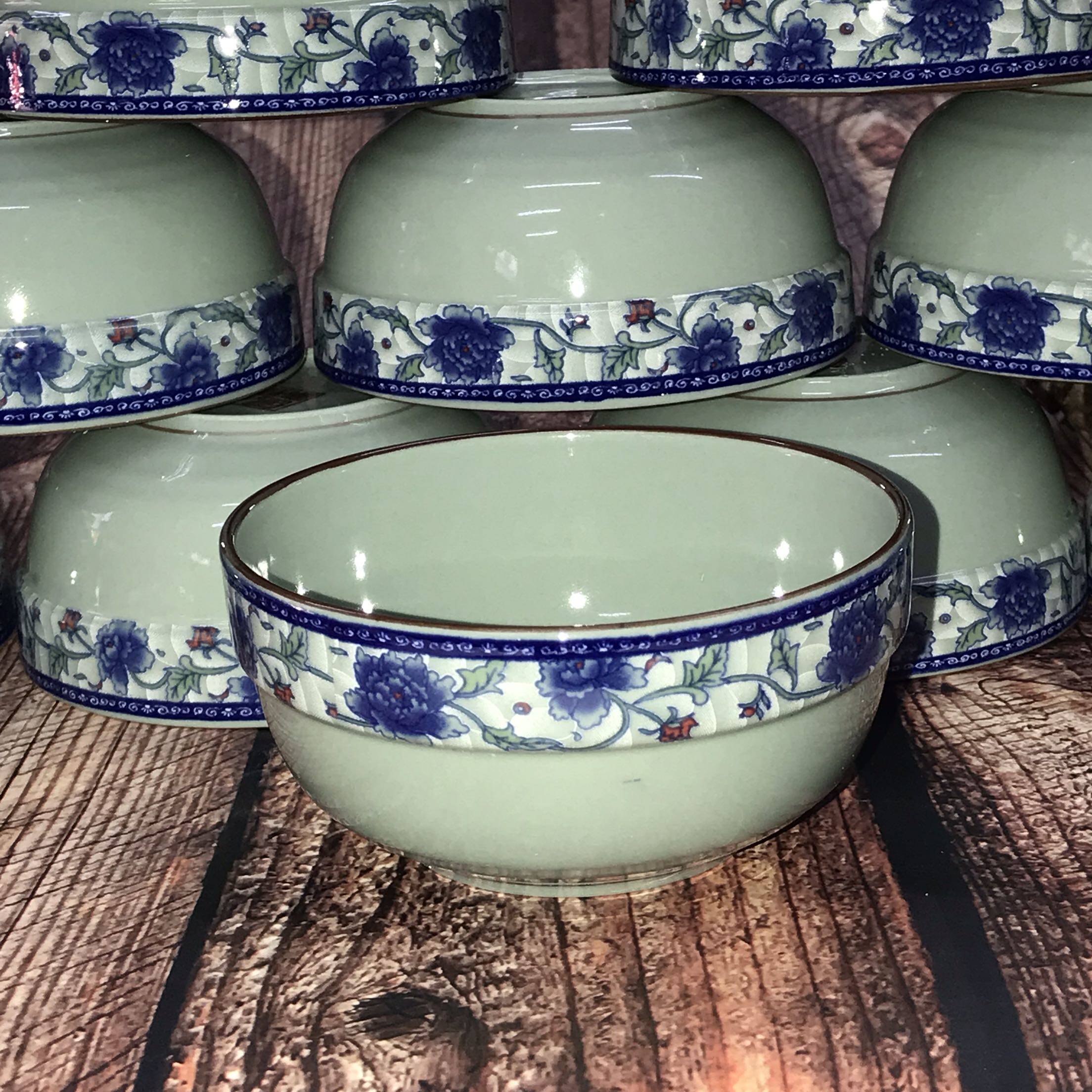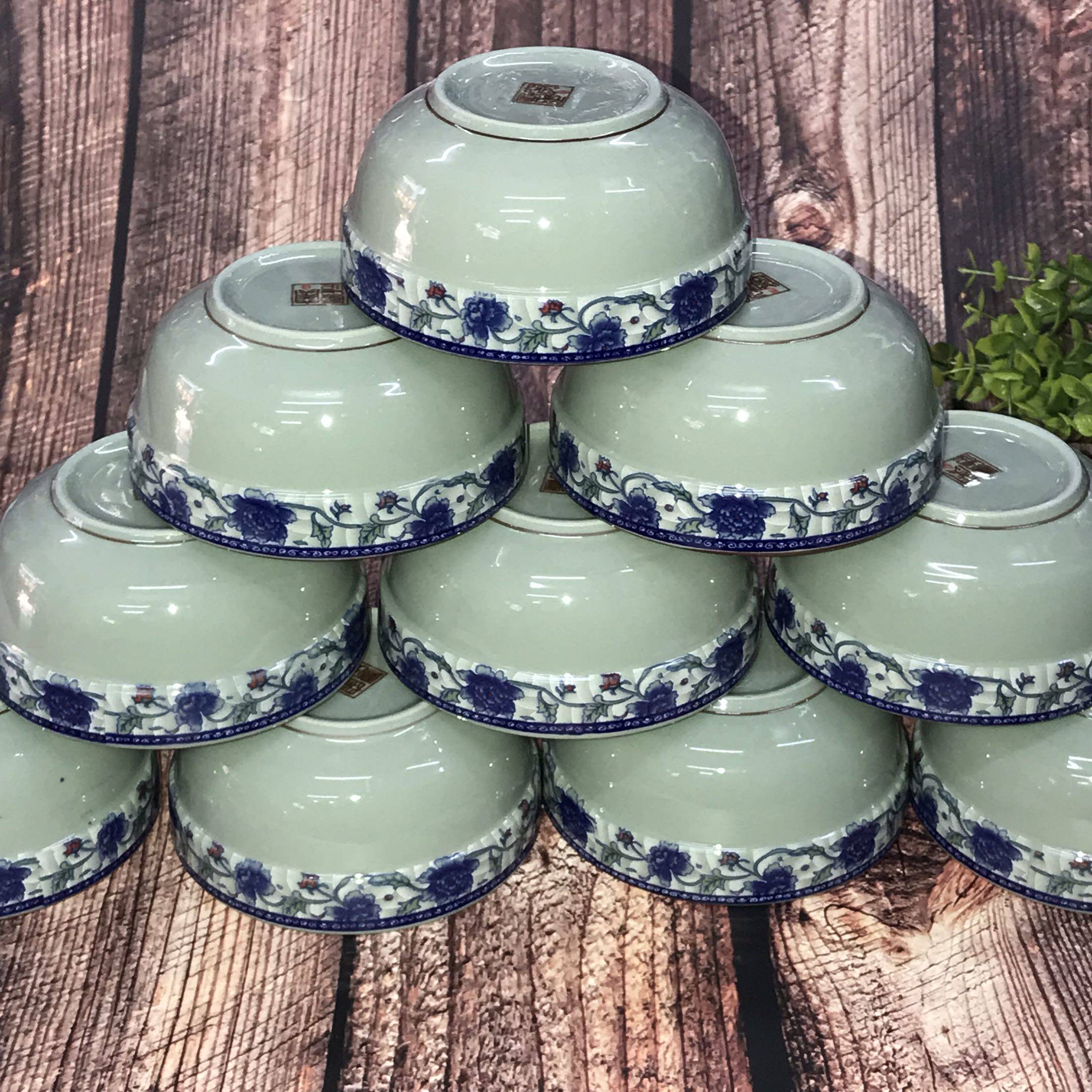 Green flower porcelain dining bowl home ceramic retro bowl soup brief about edge thickened Chinese wind cutlery 10 Installed Rice Bowl-Taobao