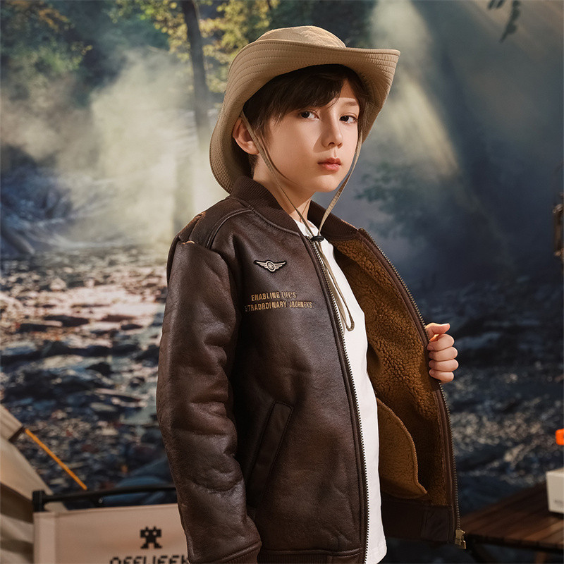 Jeep Boy Clothing Boy Coat 2023 Autumn Winter New Plus Suede Anti-Chill Warm Retro Classic Flight Jacket Children-Taobao