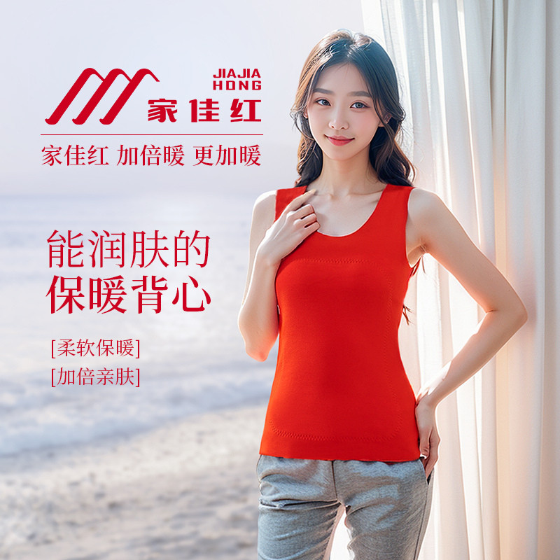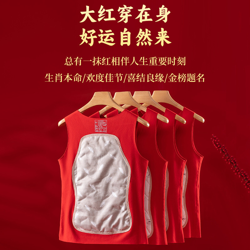 Home Jia red down Warm Vest Lady Inner Wear winter plus velvet Thickening Without Mark of the Year Great Red Cotton Camshoulder-Taobao