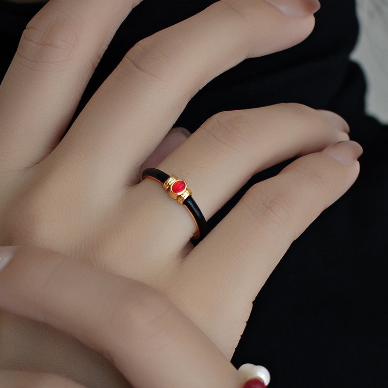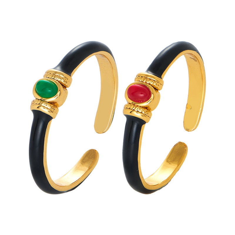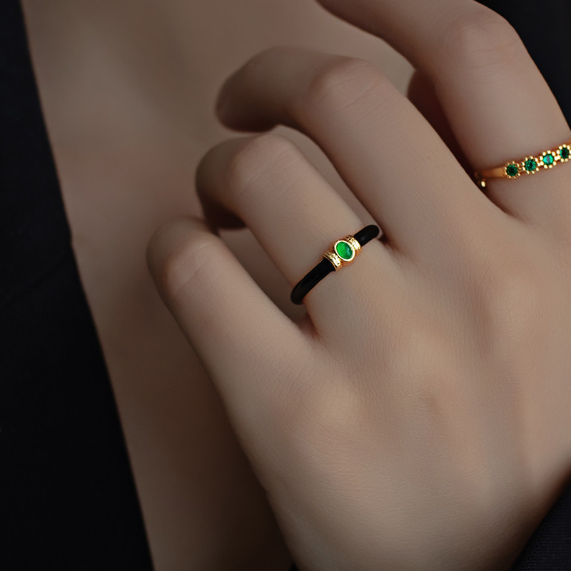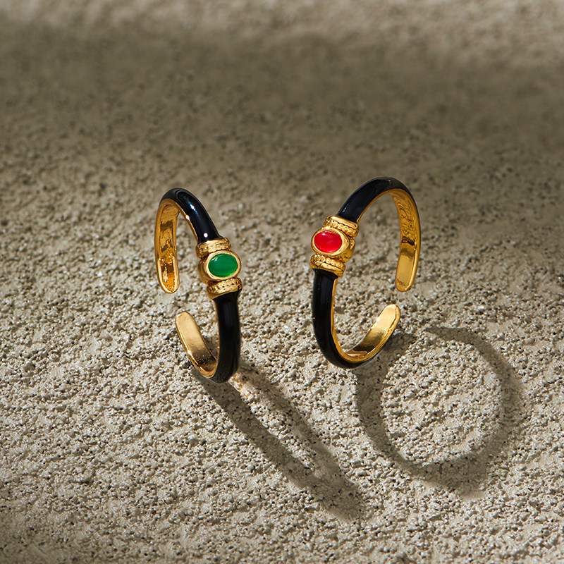 Single black enamel red Manau opening single black enamel green agate opening black enamel Green Manau red Manau black enamel green agate green speck black enamel red Manau rose ring