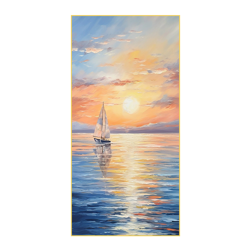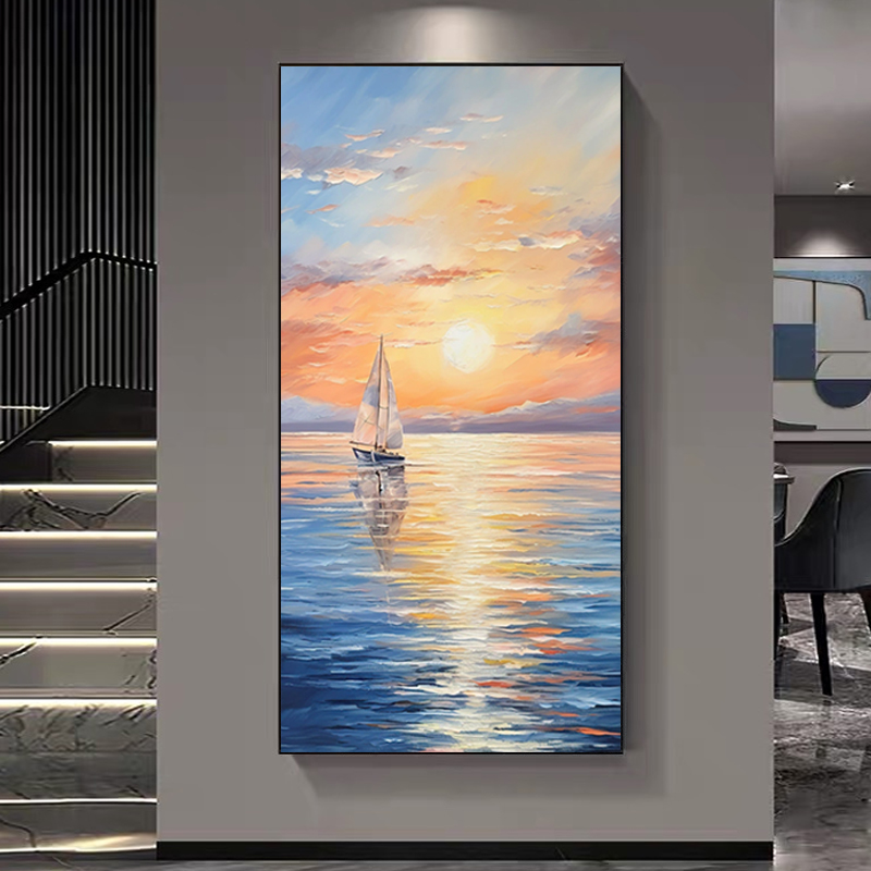 Genguan Sea View Sunrise One Sail Smooth Hand-painted Oil Painting Aisle Corridor Scenic decoration Painting modern minimalist creaty painting-Taobao