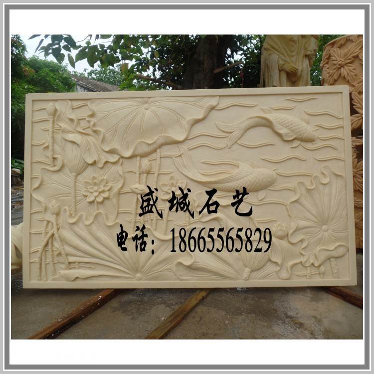 Sandstone Reliefs Custom Carp Lotus Lotus Tutu TV Background Wall Mural Art Sand Sculpture Wall Landscape Flower Pot Spray Pool-Taobao