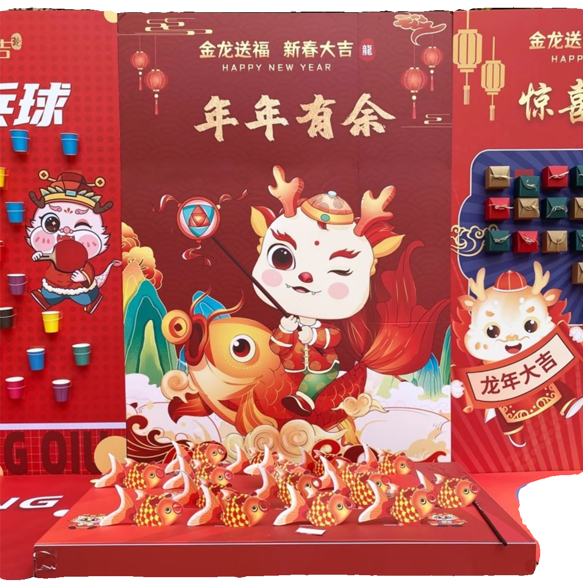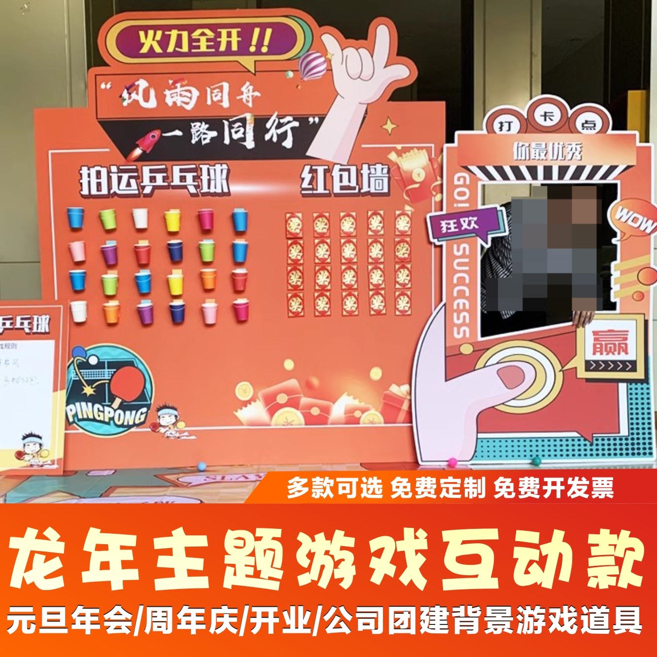 New Year's Day Construction New Year Annual Meeting Decorative Atmosphere Arrangement Red Envelopes KT Exhibition Board Background Wall Custom Ferrule Games-Taobao
