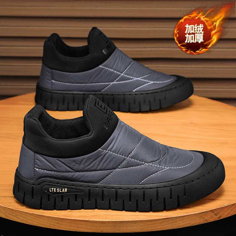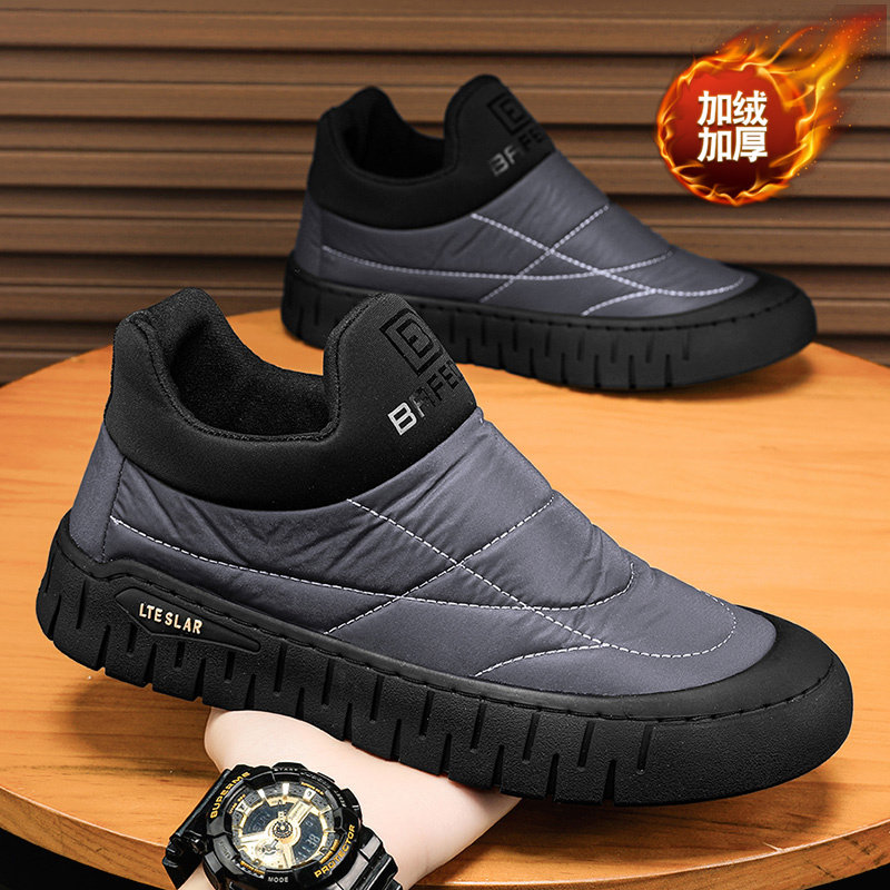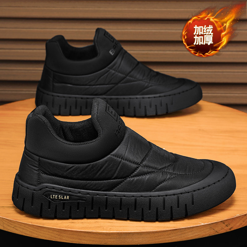 One foot pedal men's shoes winter gush warm and casual cotton shoes men light non-slip to work and work old Beijing cloth shoes-Taobao