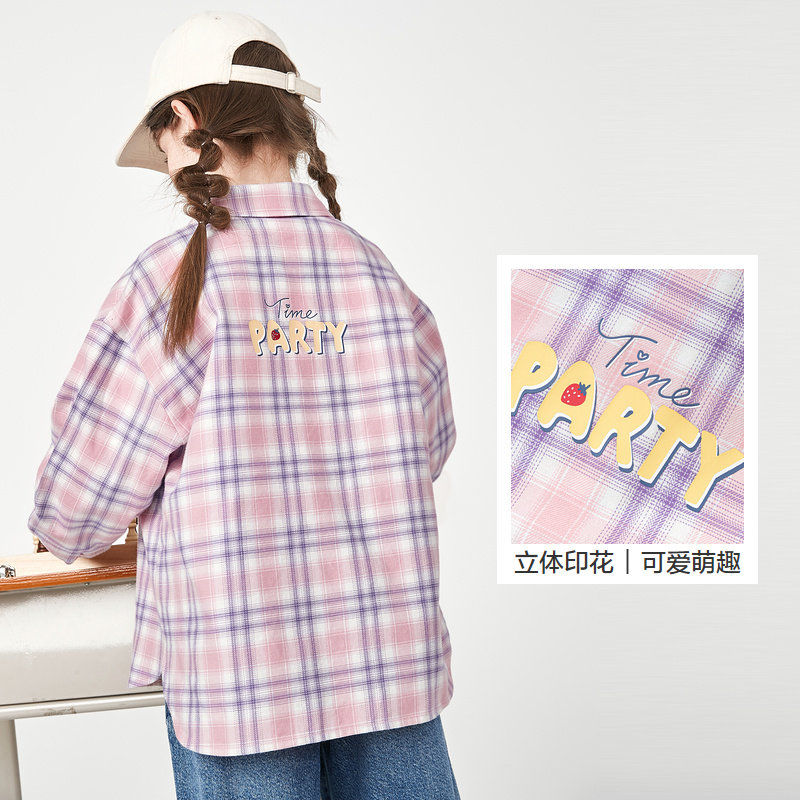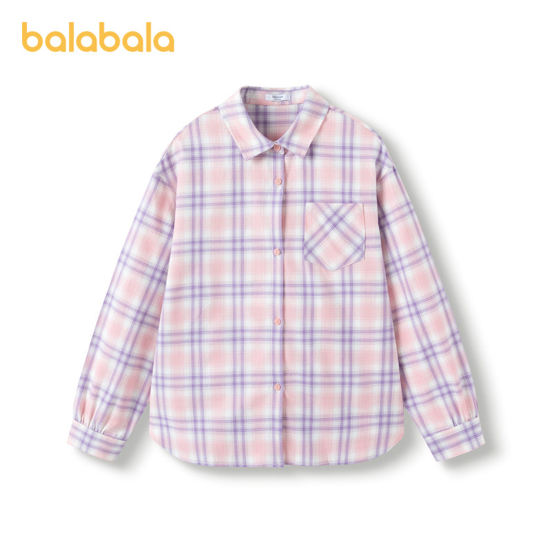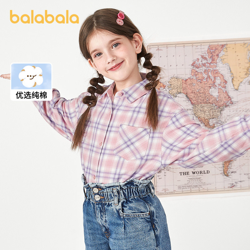 Bala Bala Children Long Sleeve Shirt Girl 2024 Spring loaded baby CUHK Baby Plaid Printed Sweet and Tidal Lining-Taobao