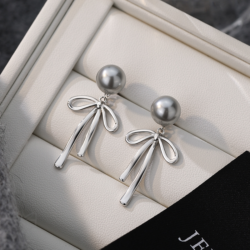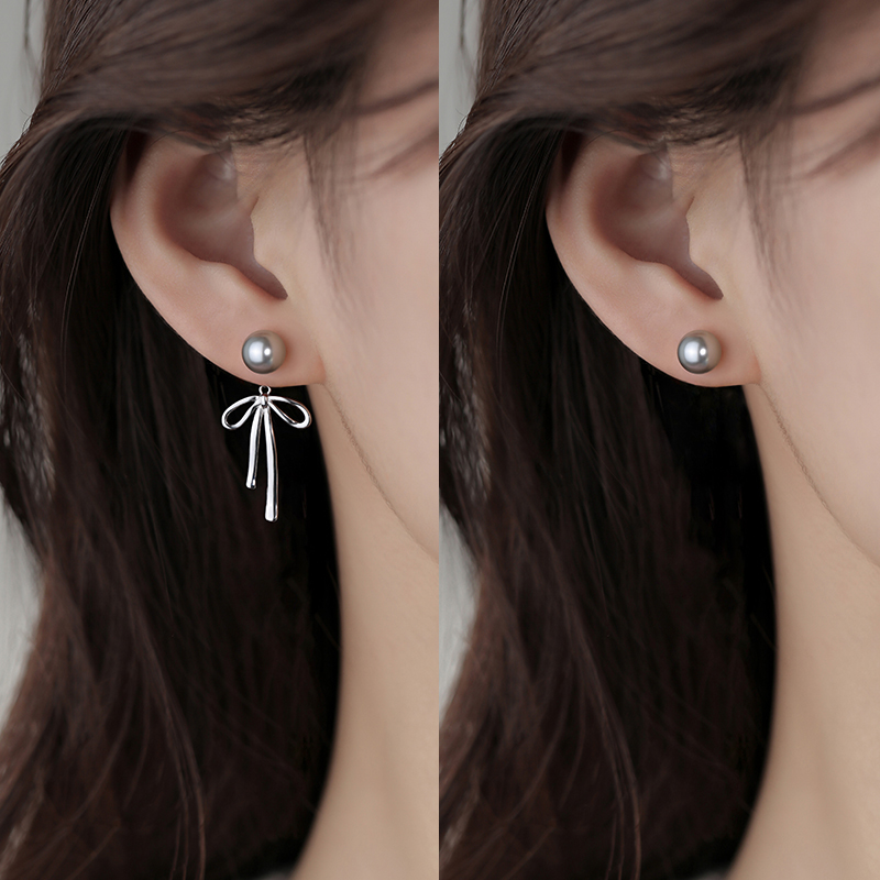 (Alley South) 999 silver needle butterfly knot earrings female light extravagant and small crowdpearl earrings 2023 new bursting earrings-Taobao