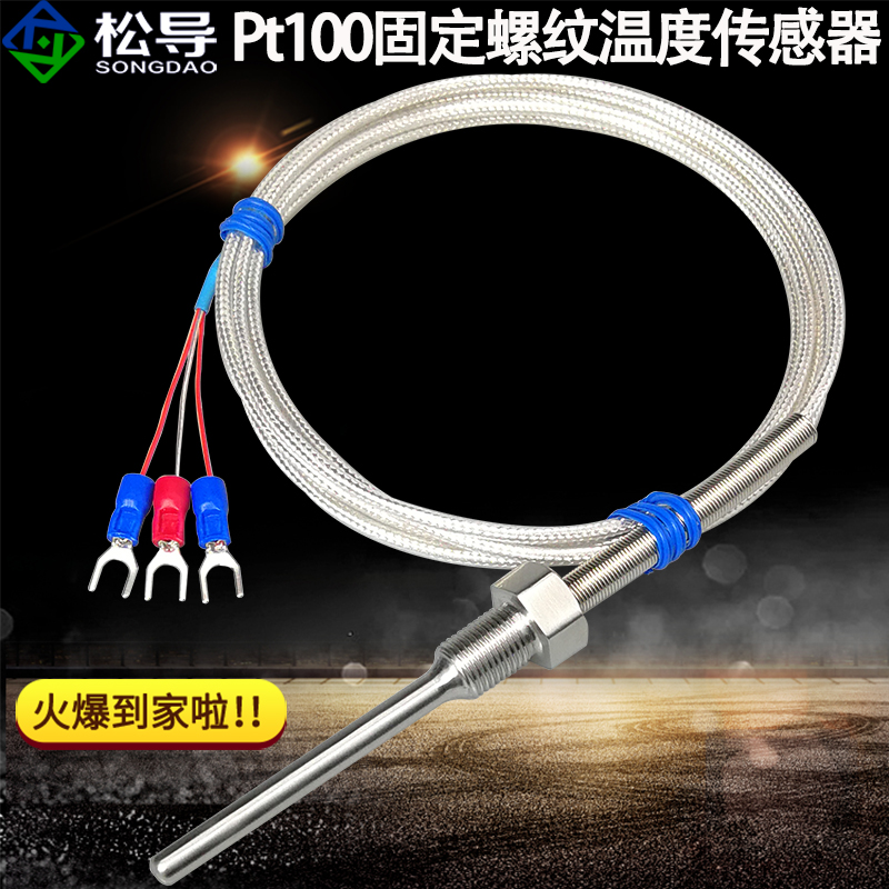 Waterproof temperature sensor 0Pt Thermal resistance platinum stainless steel 10 fixed probe threaded with K type thermocouple-Taobao