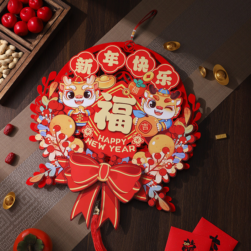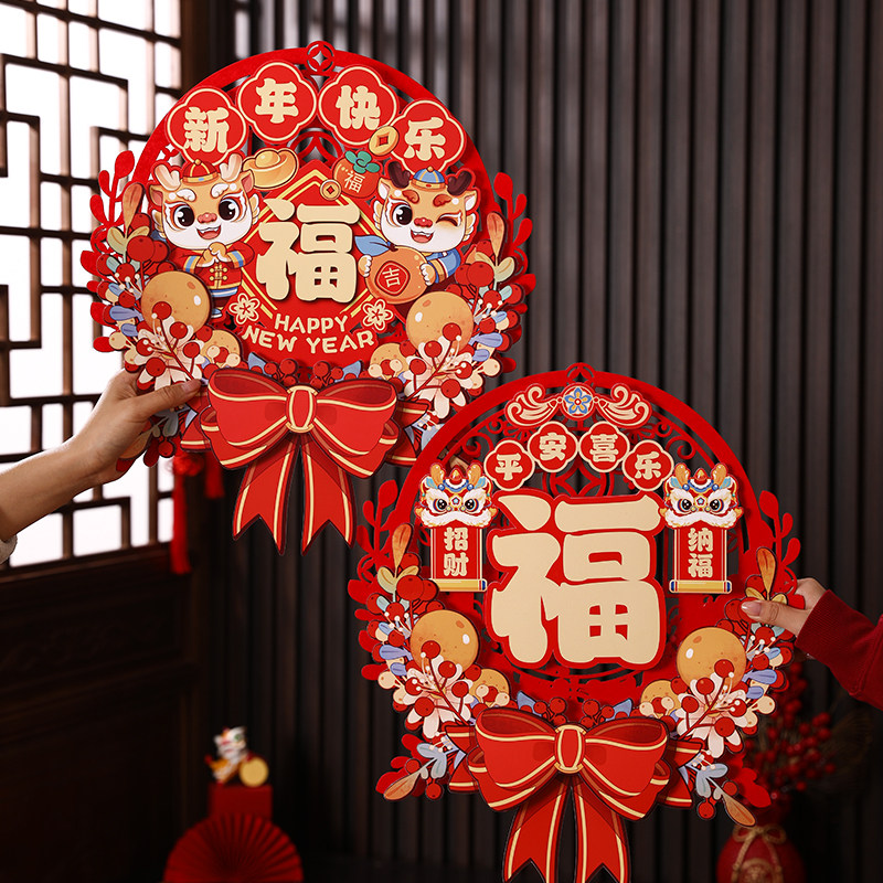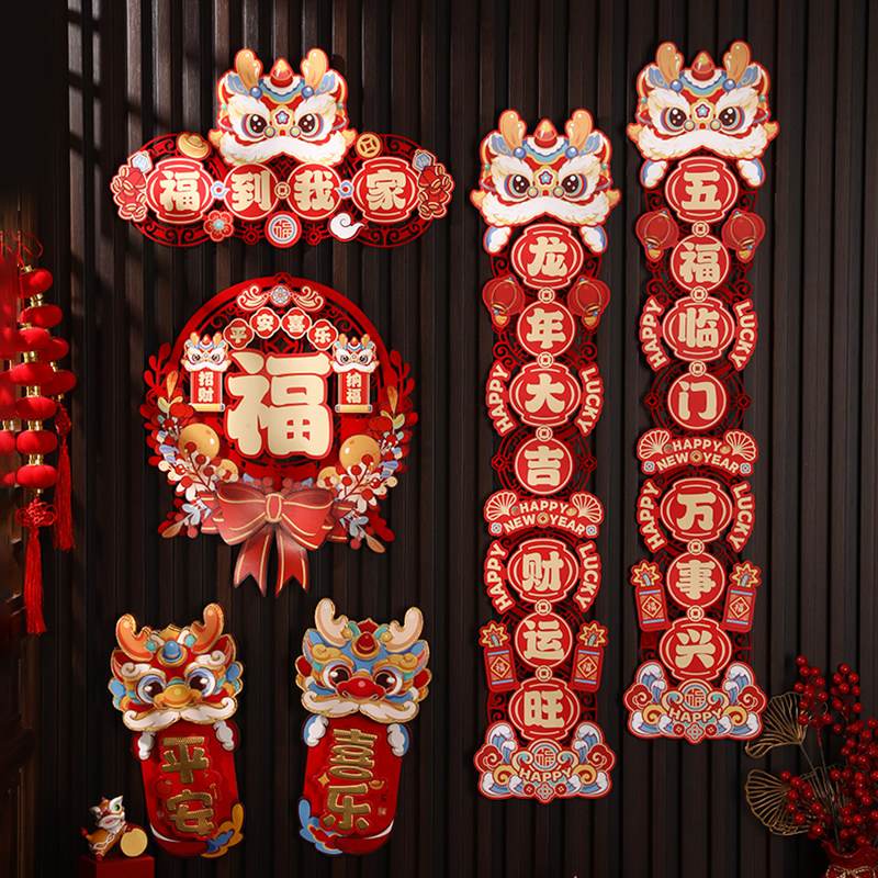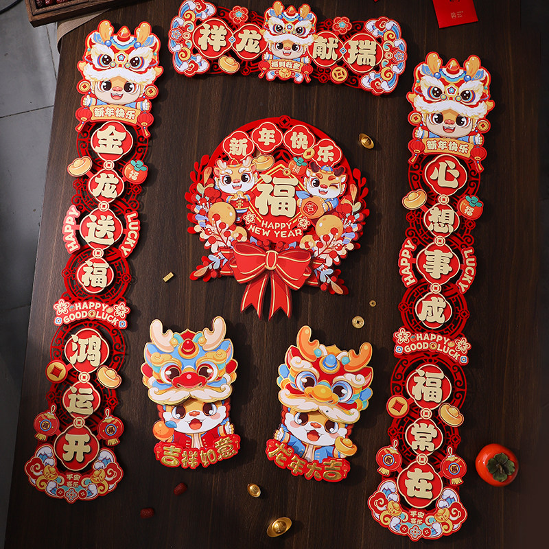 Dragon year three-dimensional felt cartoon couplets for 2024 new Spring Festival Chinese New Year's home decoration New Year's magnetic attraction Chunlian-Taobao