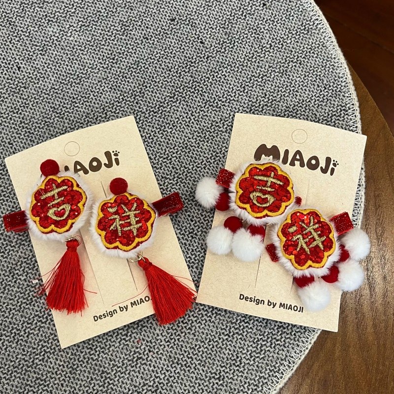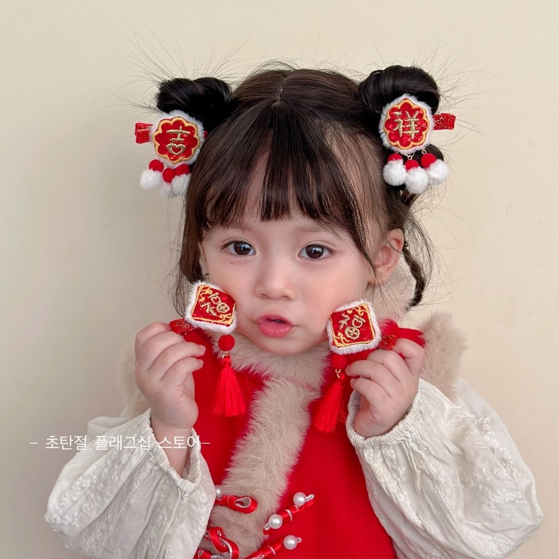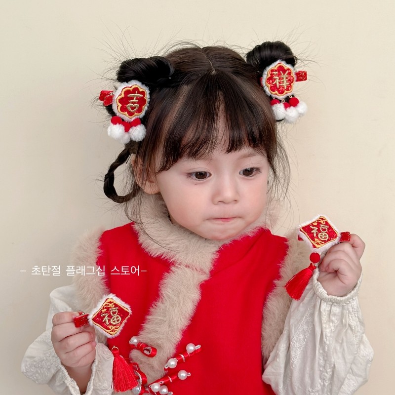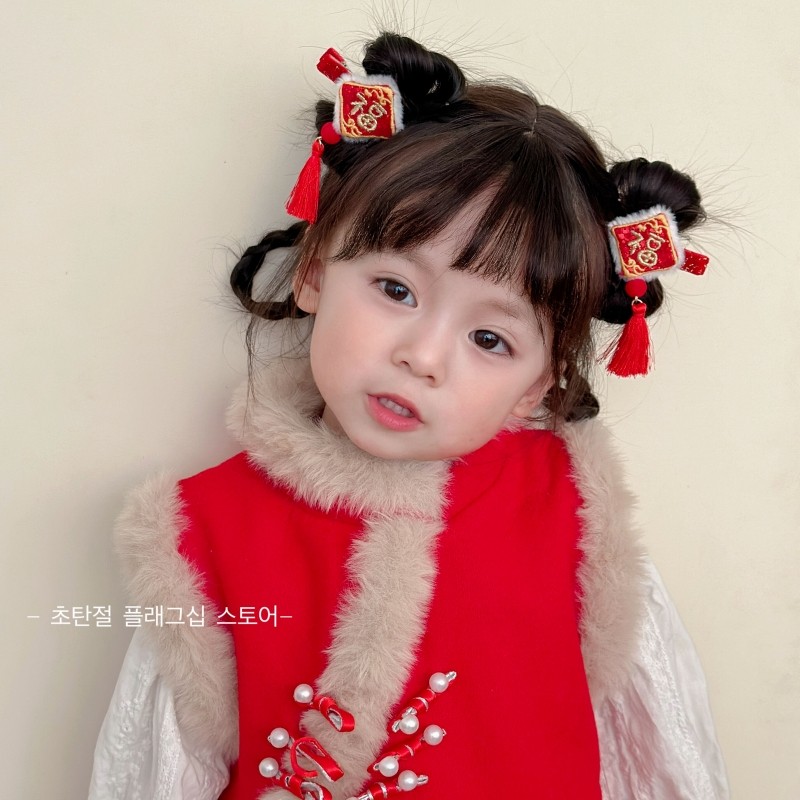 Little Girl's New Year Hair Accessories China Wind Red Festive Plush Flow Sufu Characters Haircut Children Hanfu Chinese New Year Headwear-Taobao