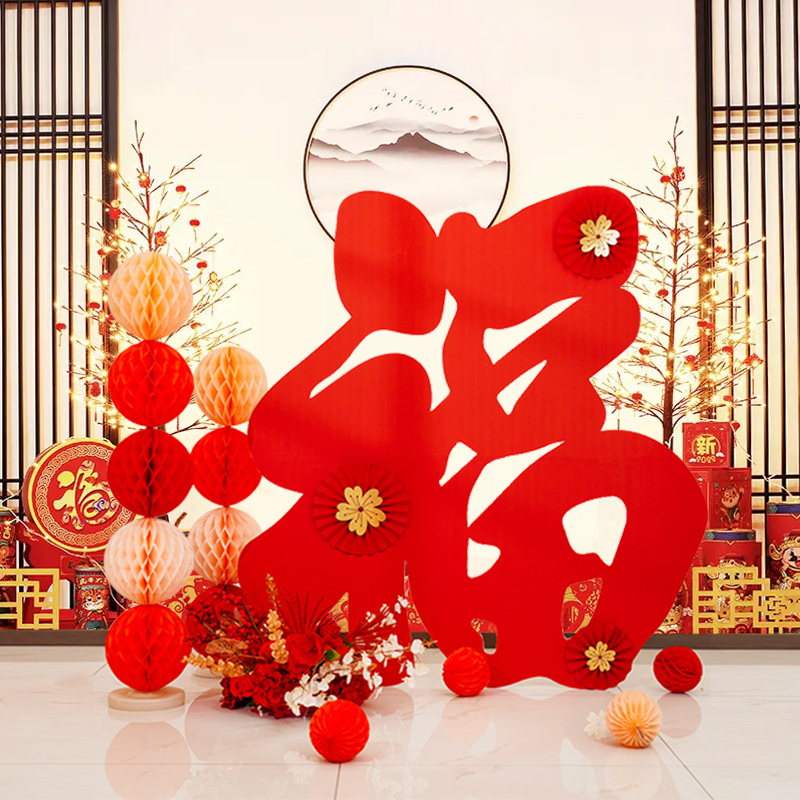 2023 Rabbit Year Great Fu Character Kt Board Three-dimensional Balloon Decoration New Year's New Year's New Year's New Year's New Year's Day Placement Activities New Year Background Wall-Taobao