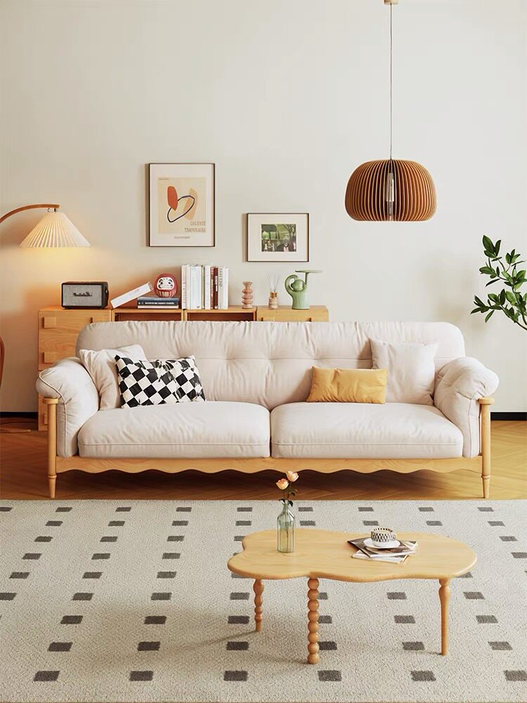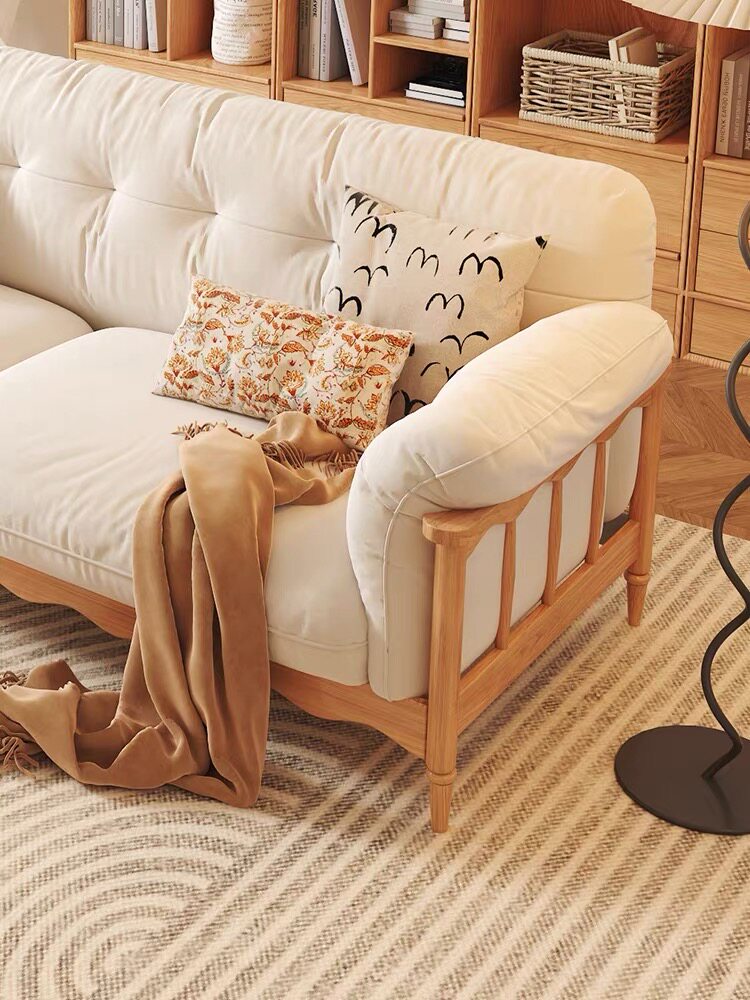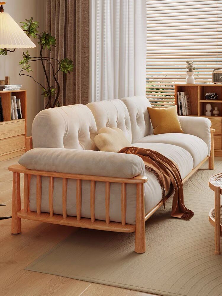 Full solid wood small sofa tea table combination Jane about small family style living room original wood color wind winter and summer double double digit-Taobao