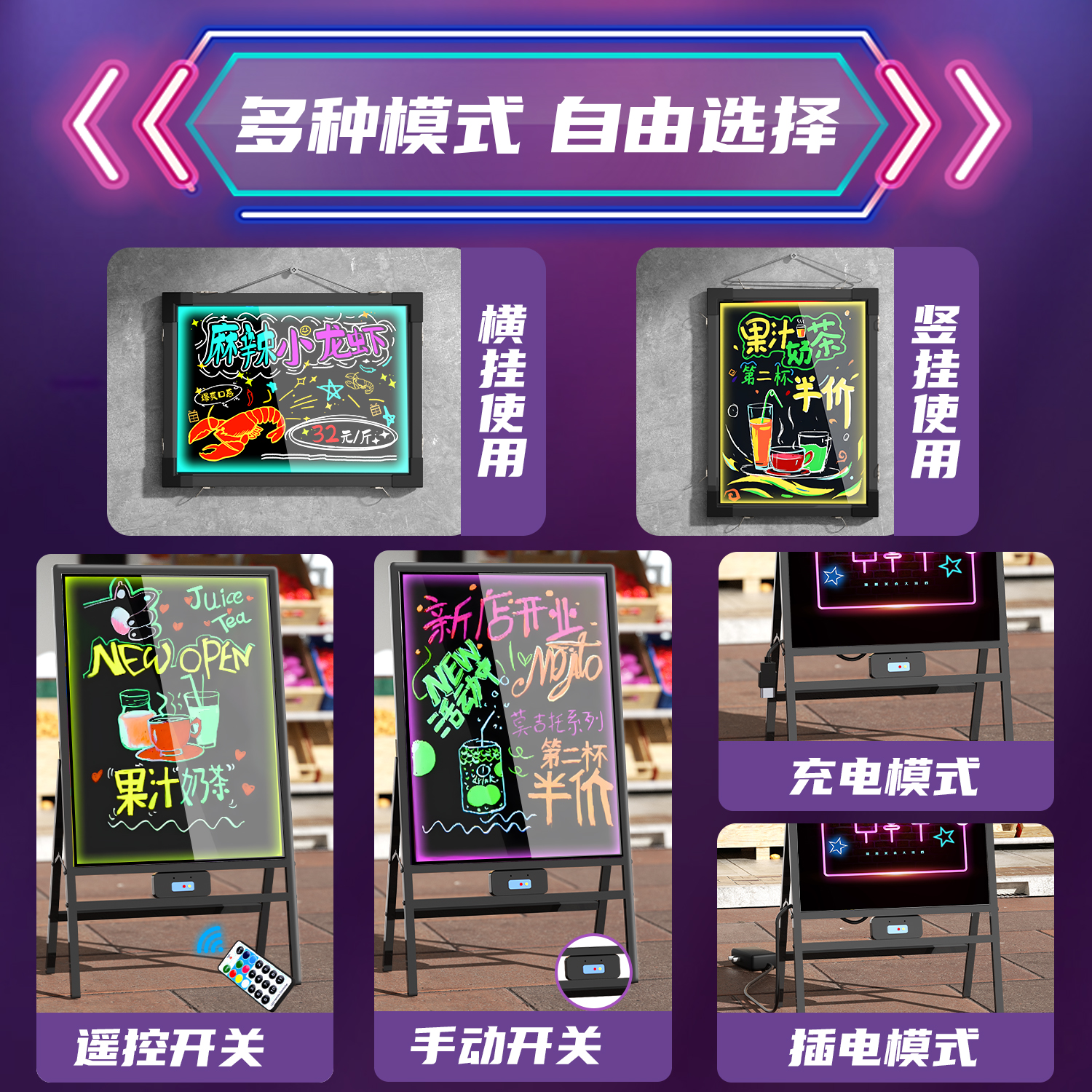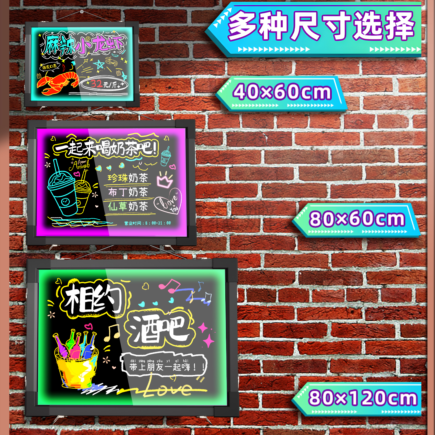 Fluorescent Plate Hand Writing Suspended Luminous Billboard Electronic Led Lights Outdoor Night Market Stall Exclusive Small Blackboard Shop Doorway Sign Show Publicity Customised Colorful Writing Board Plug-in Charging Board-Taobao