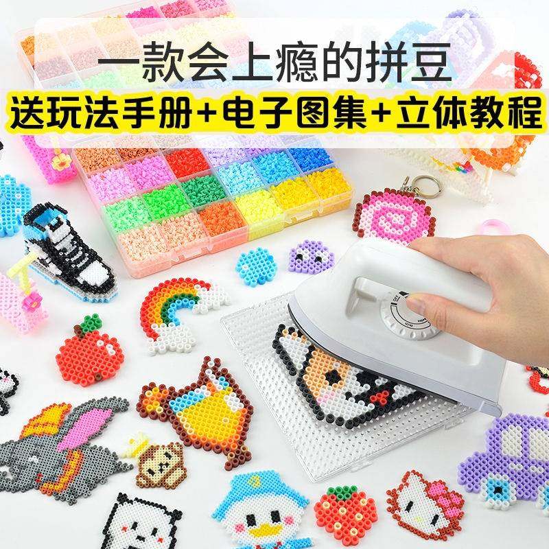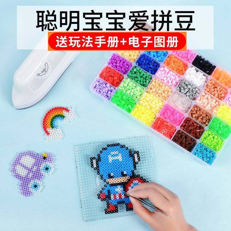 Children Toy Collared Bean Little Girl Handcrafted Small Bean Grain Accessories Puzzle electric iron beads glued drawing boxed-Taobao