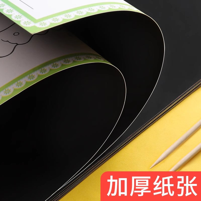 100 scraping and drawing paper 16K children black drawing paper A4 color graffiti paper scraping and painting This student scraped paper fine art creative painting scraping wax paper dazzling colour changing 8K kindergarten sand drawing paper-Taob