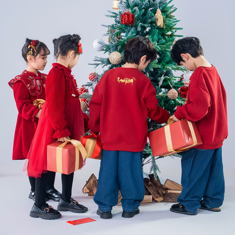 New Year's Day children's festive choral performance to serve Chinese wind plus velvet kindergarten class New Year's Red Baia New Year uniforms cheerleaders-Taobao