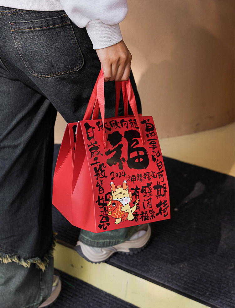 Dragon Year Foe Bags New Year Cookies Candy boxes Handmade Glutinous Rice Boat Bull Rolling Snowflake Crisp annual gift bag Tong-Taobao