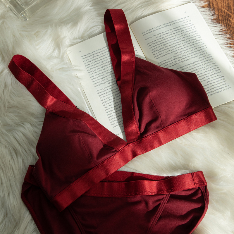 Red lingerie female large breasts with small and thin triangular cup Sexy bra hood wedding bride Ben life suit-Taobao