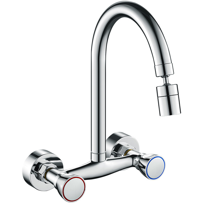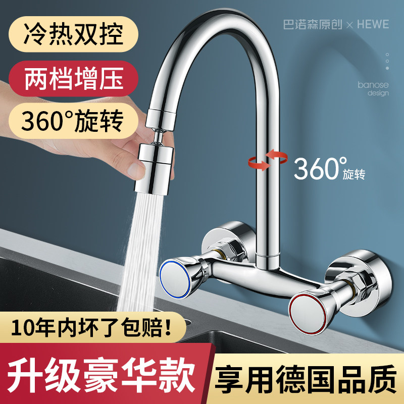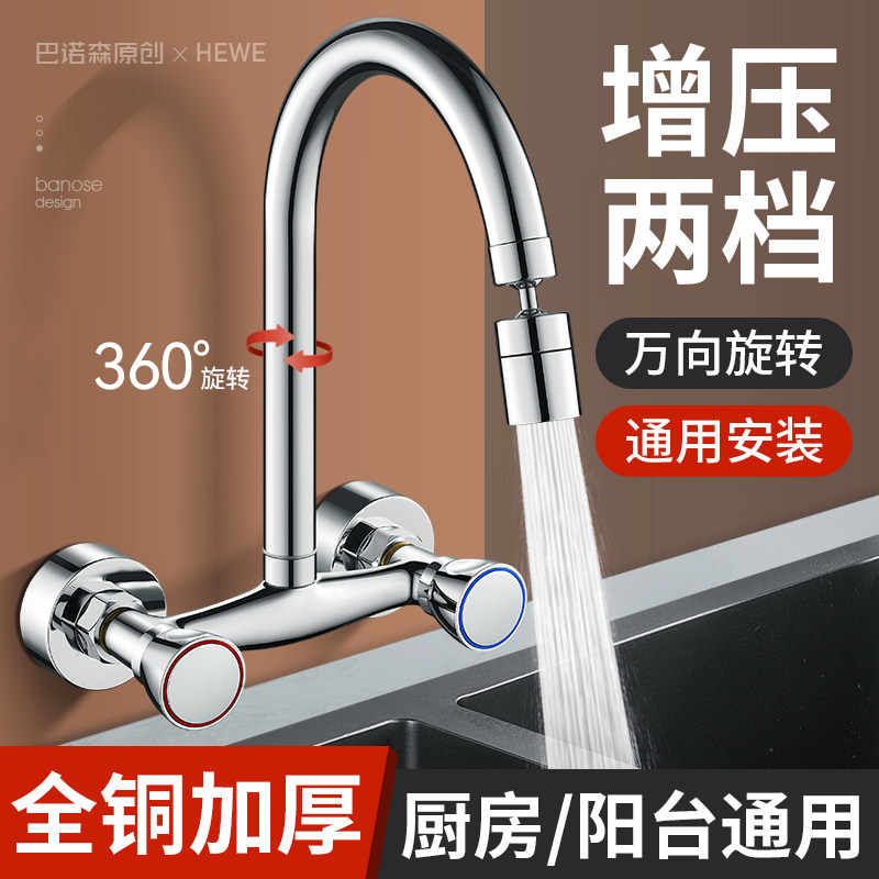 Kitchen Entry Wall Type Hot And Cold Tap Universal Home Balcony Laundry Pool Full Copper Double Switch Washing Vegetable Basin Water Mixing Valve-Taobao