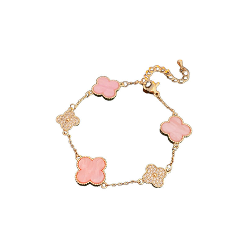 Four-leaf straw pink bracelet four-leaf straw white bracelet serpentine bracelet (copper material)