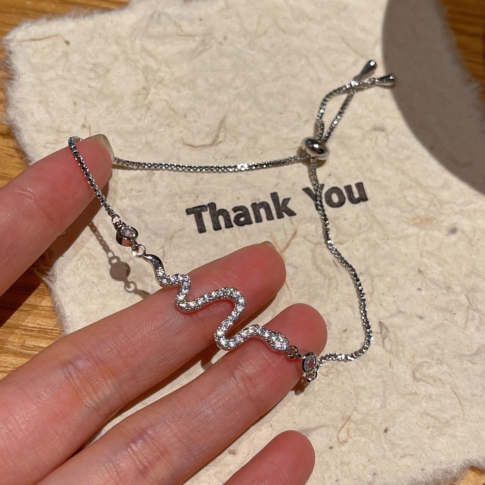 Serpentine full zircons Four leaves small floral bracelet ins sweet and small frescoed bracelet High sensation small crowdhand decoration-Taobao