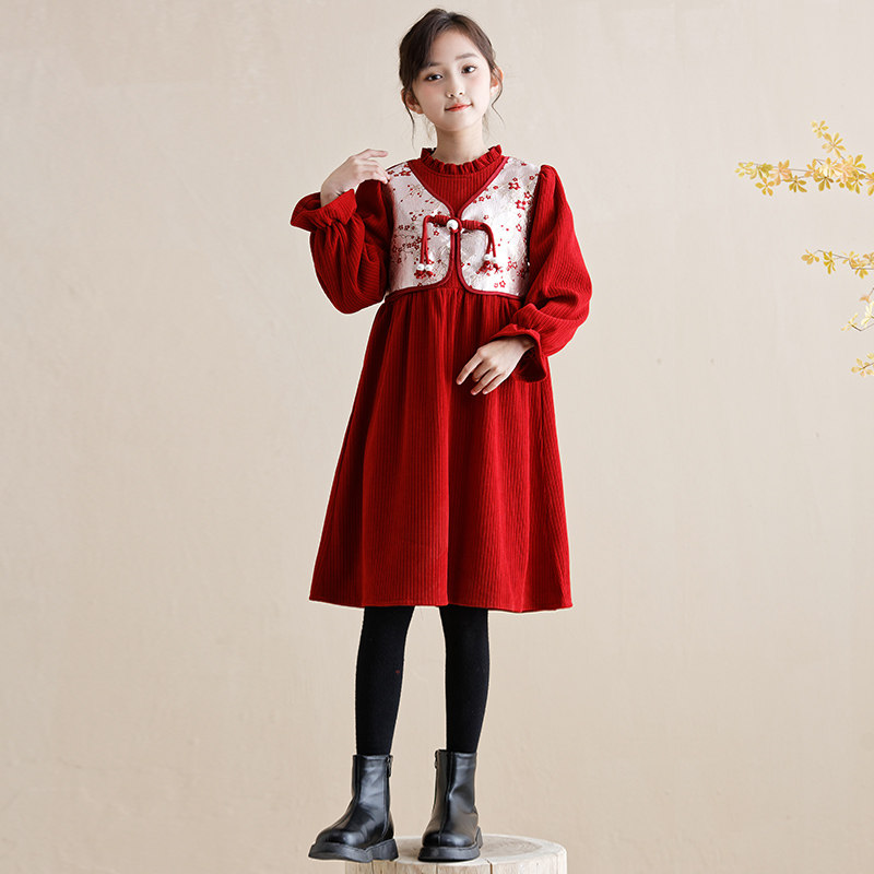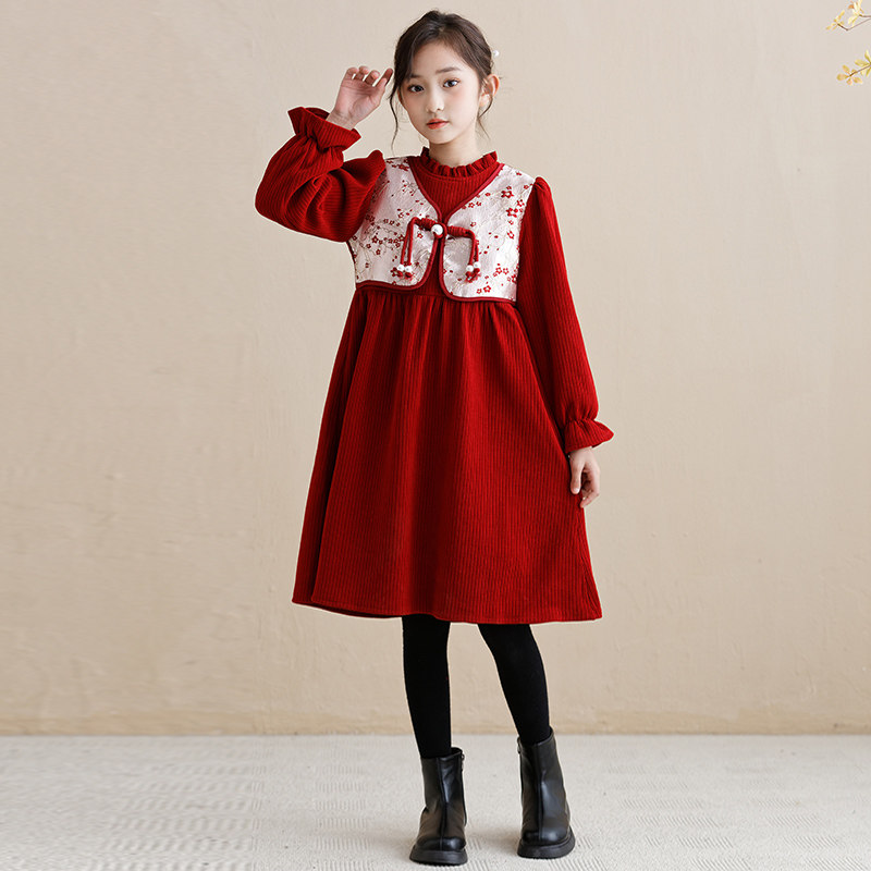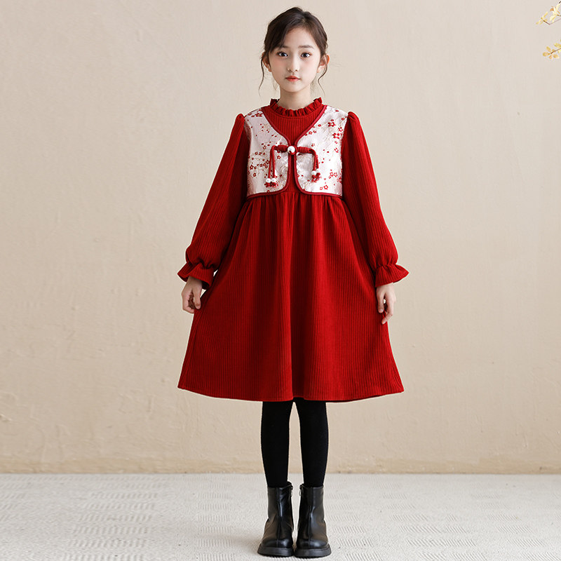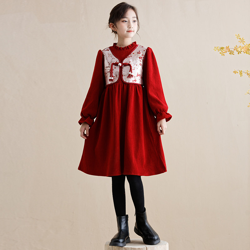 Country Wind New Year Princess Leia New Year Princess Dress New Year Princess Skirt Wine Red Cortex Hairstyle New Year Princess Dress Black Plus Suede Pants National Wind New Year Dress Series