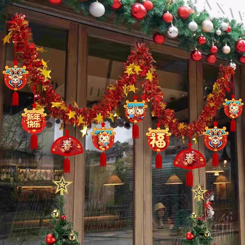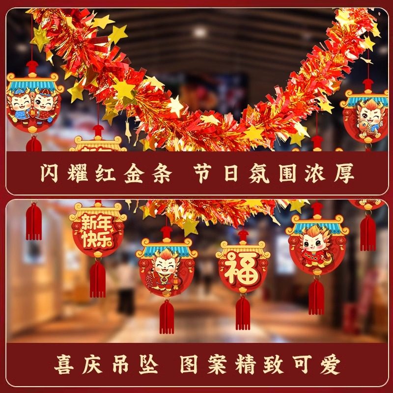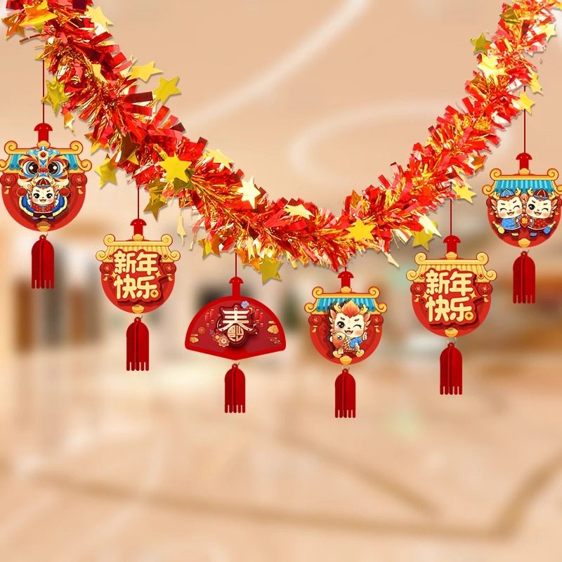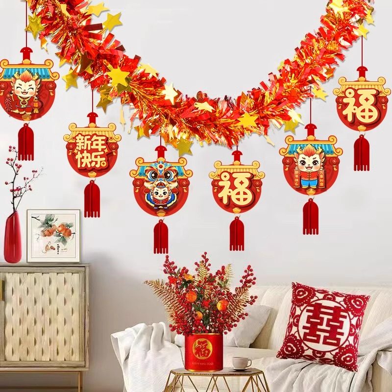 2024 Longyear Spring Festival New Year's New Year 4 m Colorful Strips Rahua Arrangement Indoor Living Room Background Wall Hanging Decorations for Chinese New Year decorations-Taobao
