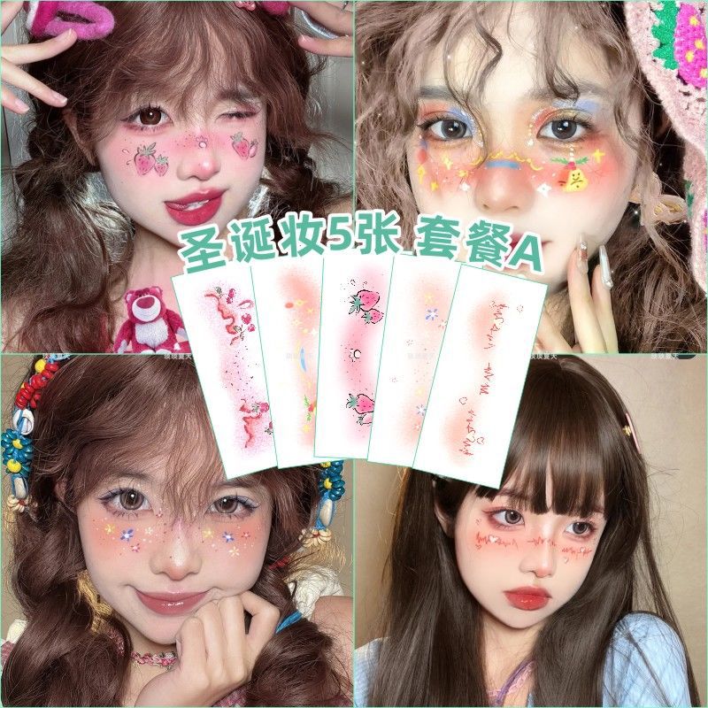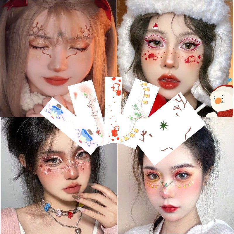 Christmas makeup Cosmetic Tattoo Sticker Loving Face Appliqued Sloppy Creative Makeup Imitation Fun Children's Hot Girl Tattoo Sticker-Taobao