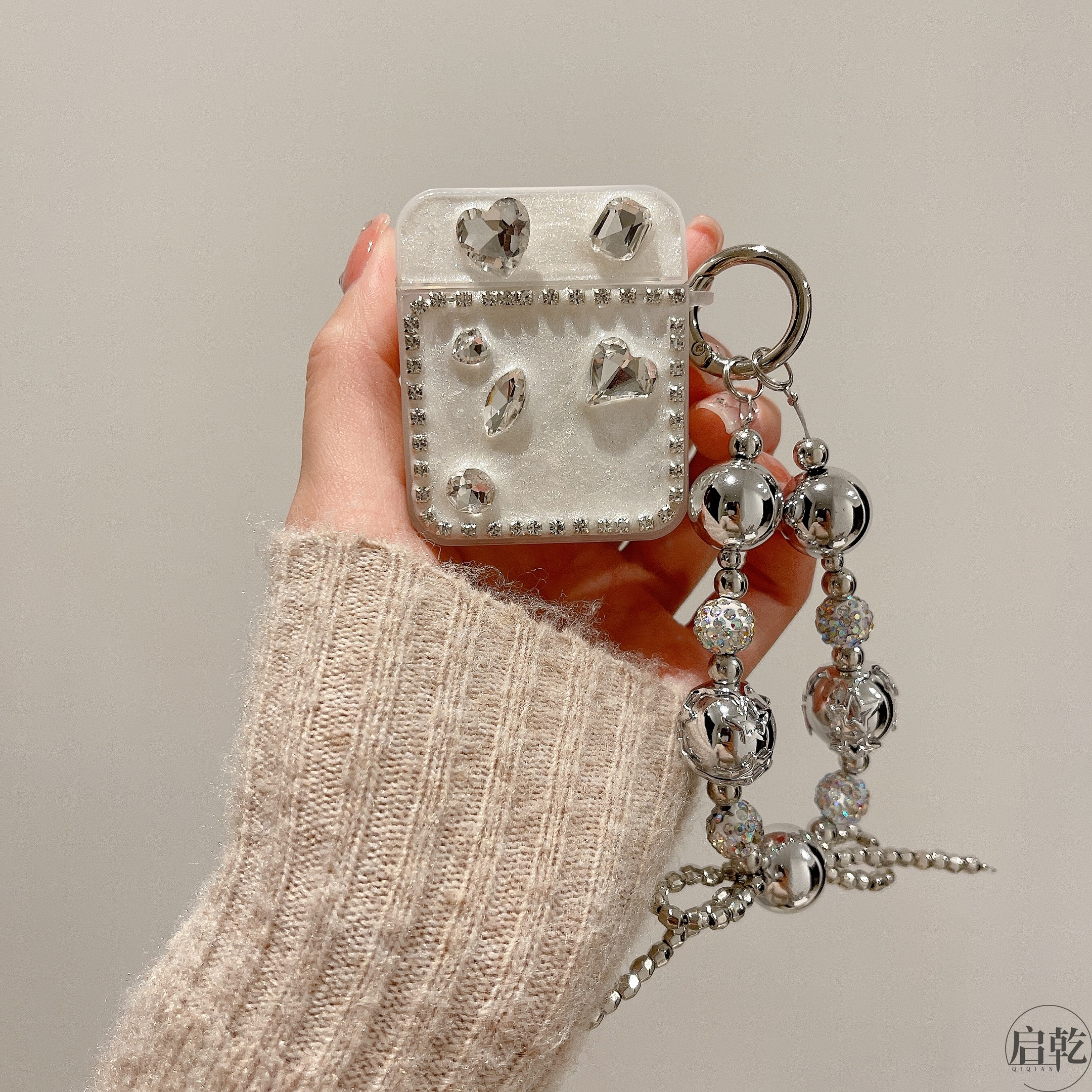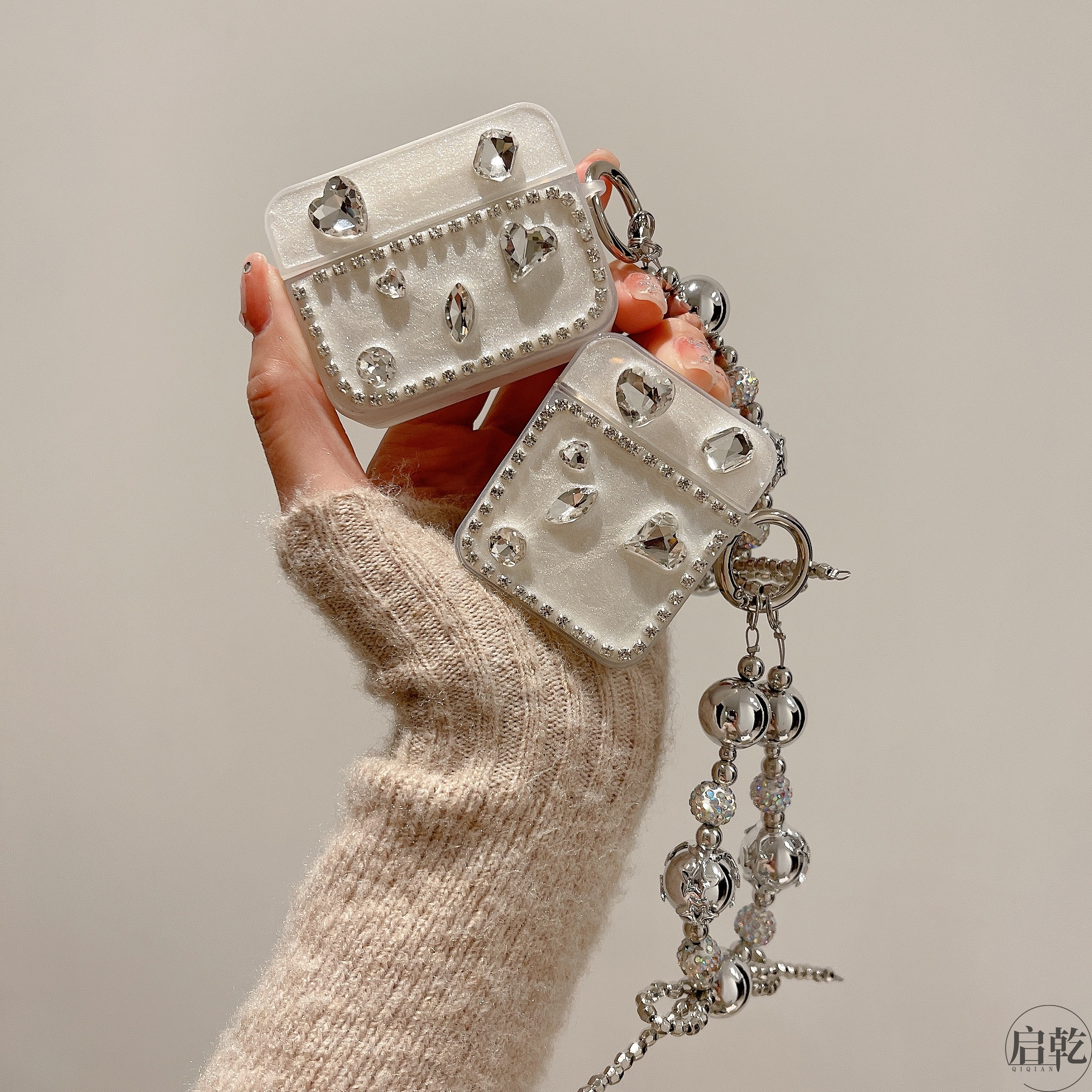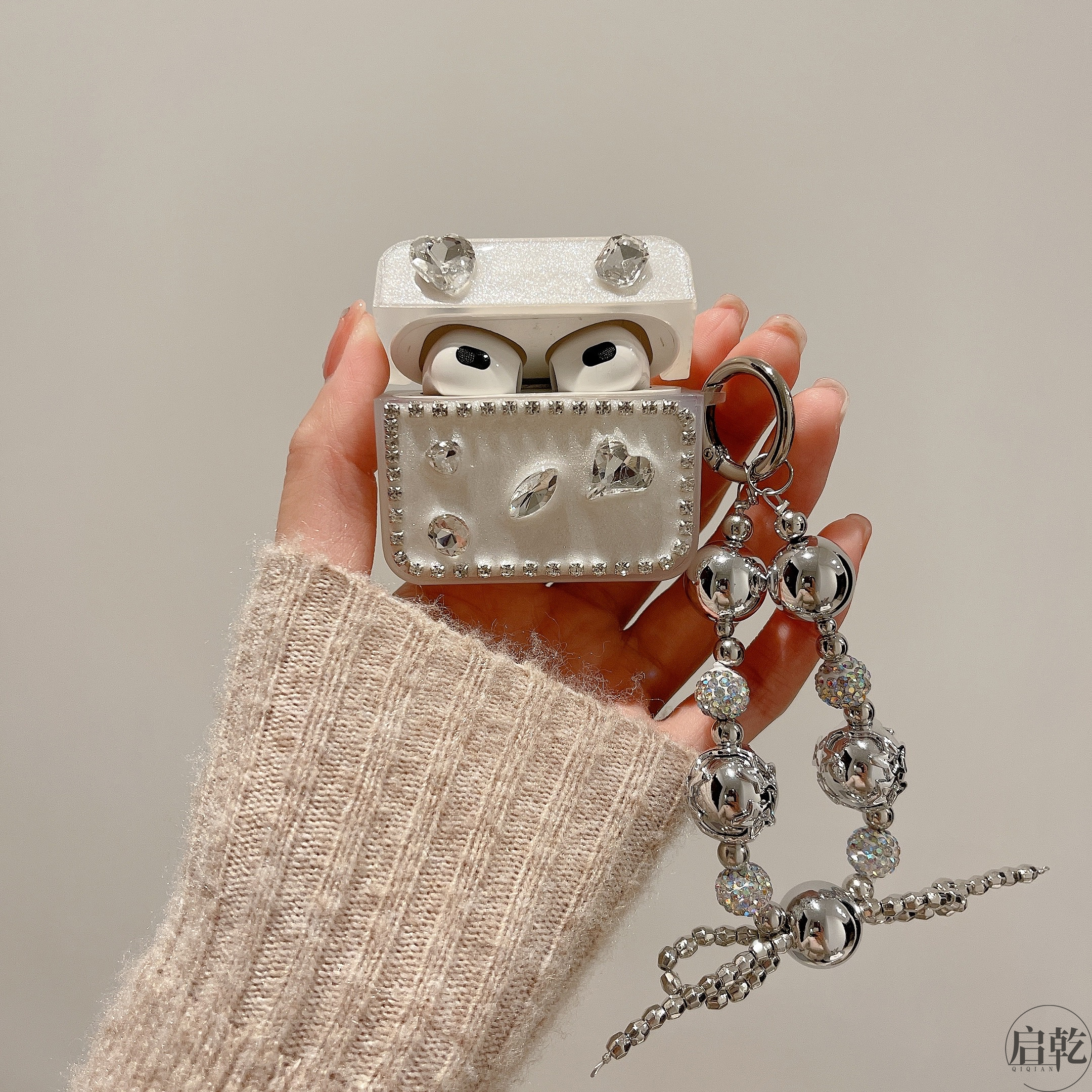 Qiandry shell textured solid diamond chain hanging rope Airpods3 headphone protective shell cover 2pro Two generations new application Apple wireless Bluetooth silicone gel soft shell advanced feeling goddess temperament-Tao