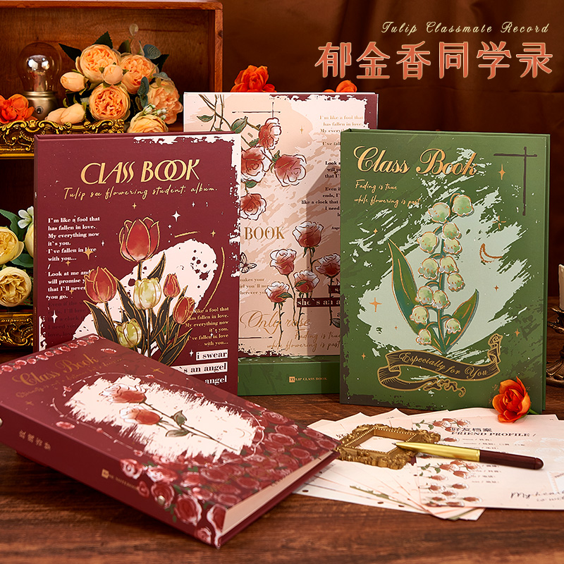 Classmates record elementary school students 6th grade girl high face value loose leaf Ben tulip Art graduation commemorative album Bronzing Gold Small Crowding Senior Sensation Boy Early High School Address Book Retro Message Album Brief-Taobao