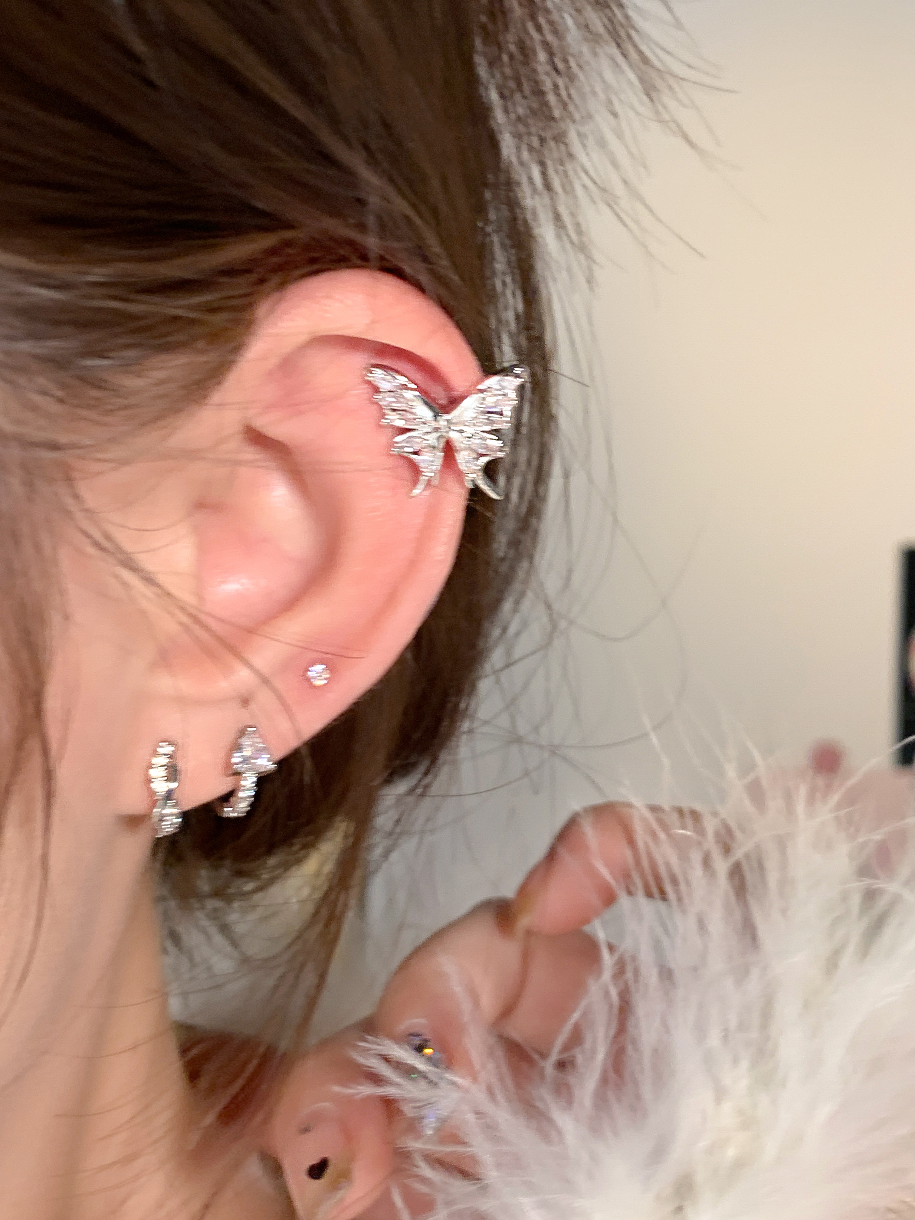 Silver butterfly needle coarse 0 8 * pole length 6 mm reverse loving ear button single fit