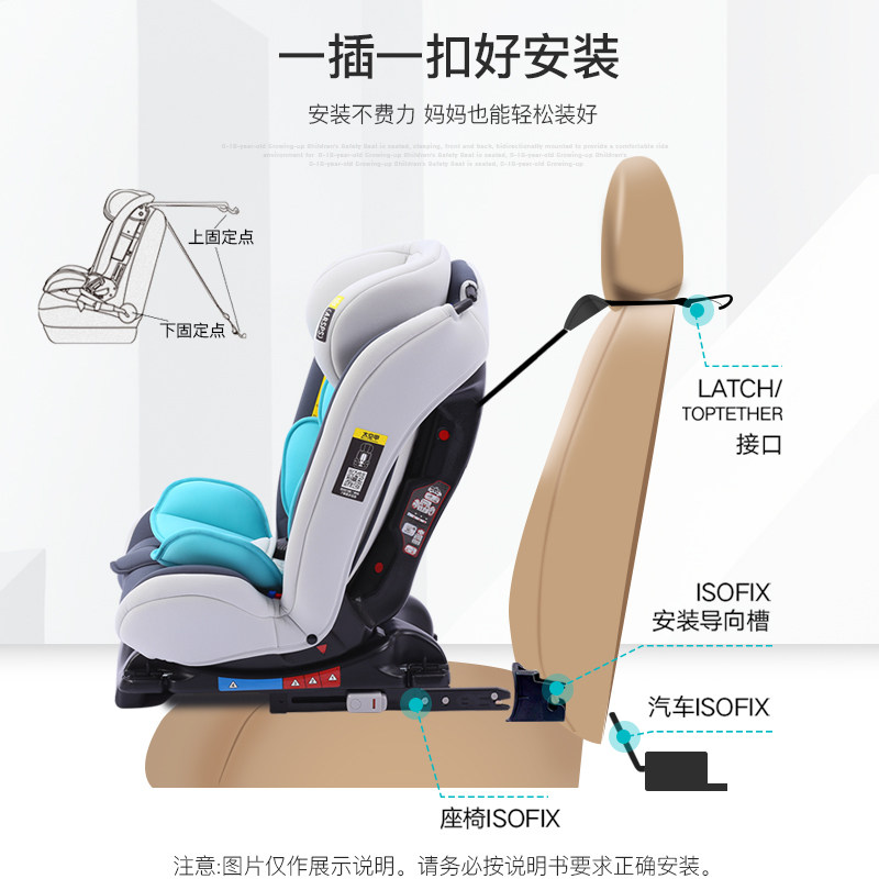 Integrated skeleton bidirectional ISOFIX can sit down and sleep 3CECE certified baby boy special fabric flame retardant no-smell classic red black -- seat belt] flip-side installation can be seated