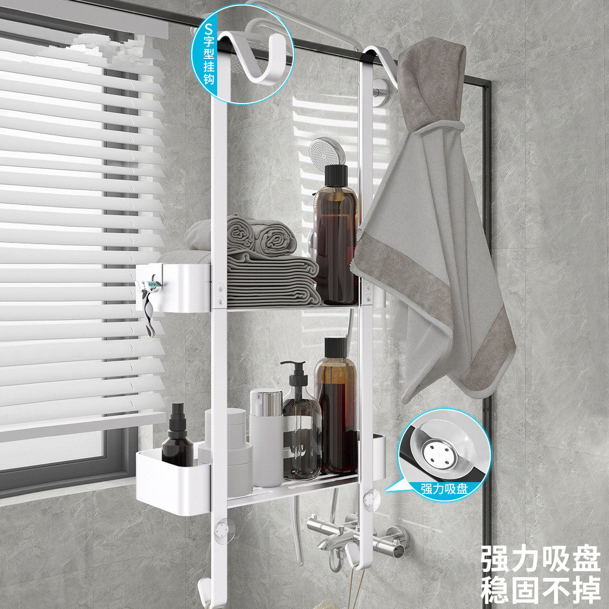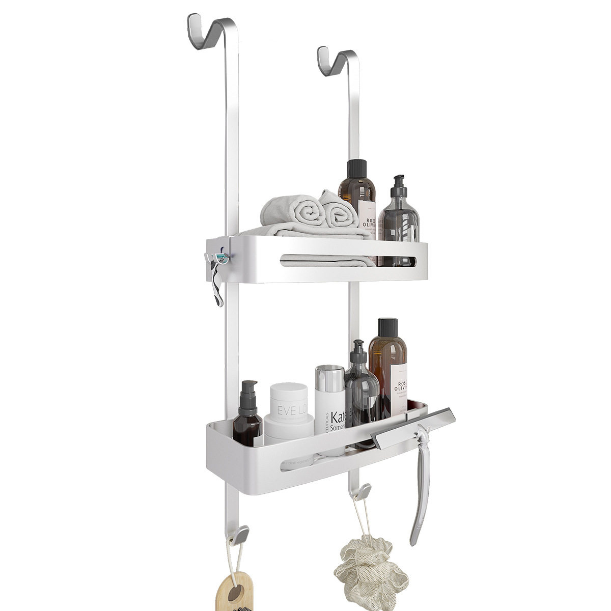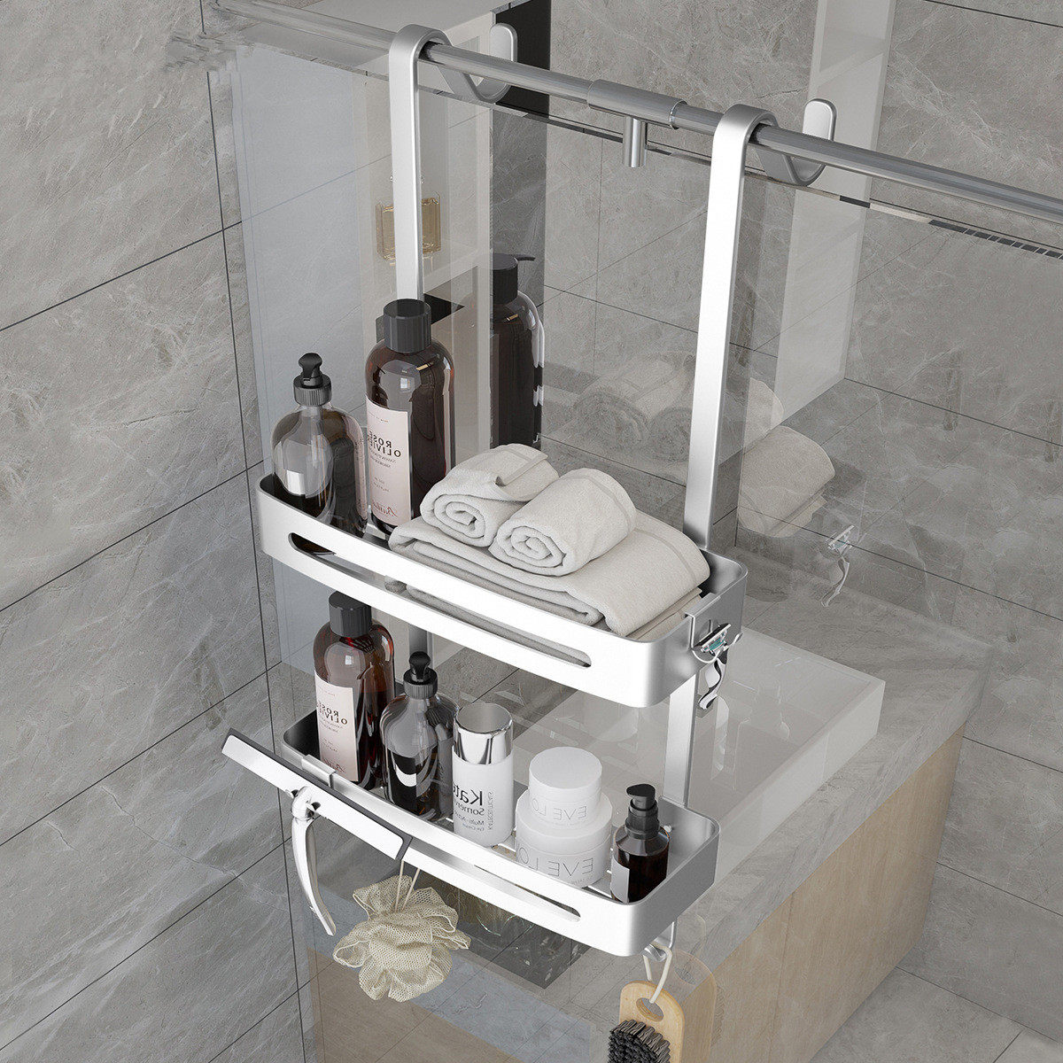 Aluminum Shower Hanging Basket-A split double matt aluminum shower hanging basket A split double layer black aluminum shower hanging basket -A with split double layer bright sand aluminum shower hanging basket B Split Double Matt