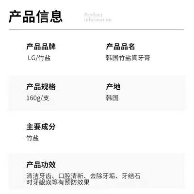 South Korea imported LG bamboo salt toothpaste sterilization and stain natural plant formula to tooth stains bad breath 160g