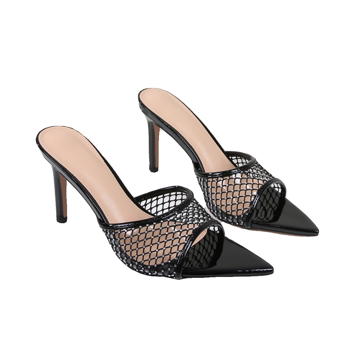 New stylish wind lambskin grid High heel sandal tip fine heel Water drill High heel slippers One foot pedal elegant 100 lap-Taobao